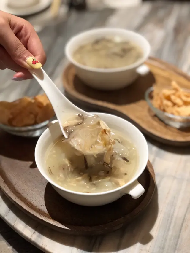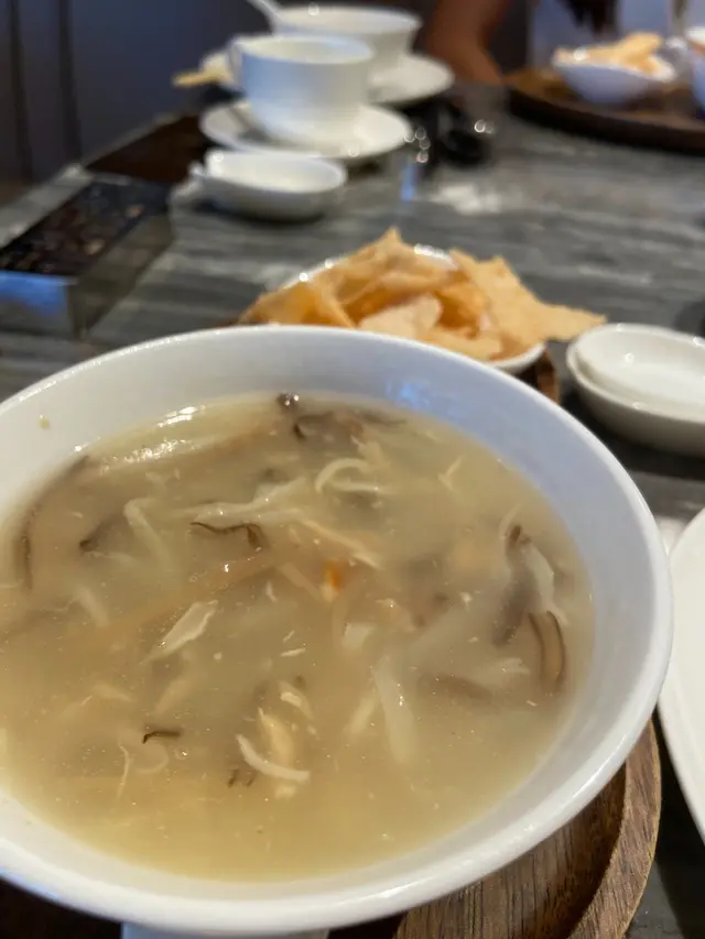 好耐都冇去飲過茶,所以要對自己好D,搵間好既去唔好浪費左個quota友人在灣仔返工,就去灣仔明閣。友人話香辣豆腐海鮮餃之前未食過,想試下,本身唔係好食得辣既我,都一試難忘,麻的感覺比辣重,很香口,吃後還有花椒的餘香,完全不油膩,作為頭盤很開胃,下次再黎的話一定會再點。另外推介蠔皇鮮菌鮑魚酥,唔係包住入面唔知有幾多鮑魚,而係原隻鮑魚上,大方得體,仲要一口放唔晒入口,要分2口先食到,廚房都好細心已經切開一半,斯文既女仕們都唔會食到好狼狽。到我平日最愛陳皮雞湯小龍包,待應哥哥拎開個蓋時,仲有一陣蒸氣蒸上黎,皮簿但成籠都冇爆,最怕一夾起即爆,雞湯香濃涵靚,忍唔住食左兩隻。以前同前輩食飯教落,想知一間中菜好唔好就要試燒味。今次試左極品密汁叉燒,肥瘦適中,入口即溶既感覺,一D都唔柴皮,加上大量蜜汁,夾時仲起絲,食落一D都唔膩。濃湯花膠雞絲羹,加上懷舊厚身簿脆,並不是用剩下春卷皮炸,配菜都咁用心;加上簿脆有點像蛇羮的感覺,花膠絲易入口,補身之選。海龍皇脆米窩燒飯,口感脆脆,有龍蝦、帶子、蝦子、松子仁,飯粒分明,每粒飯都有大量蝦子,而家睇返相都見到,鹹香鹹香,令人回味。甜品係抺茶十勝紅豆卷,不會太甜,抺茶粉在卷上有回甘味,正 !總括黎講,食物質素、環境、洗手間、服務都係五星級 !…Read More