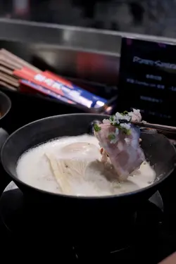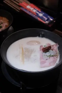 熟成雞白湯拉麵🍜 ~ 湯底稠厚富膠質,口感柔和,配上兩粒肉丸和爽彈的拉麵,使味道更為融和。