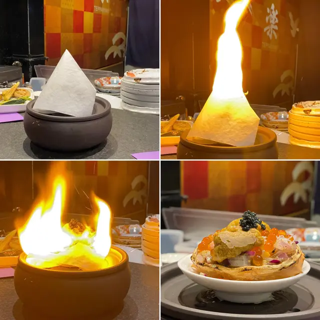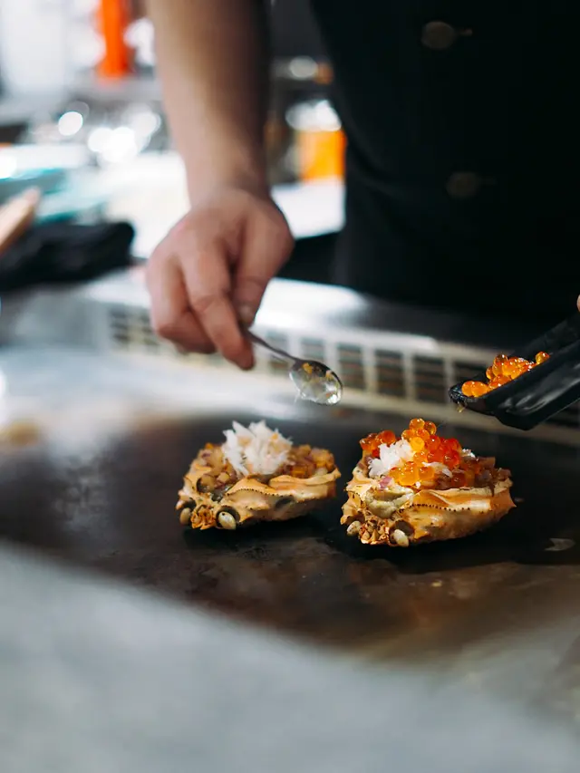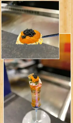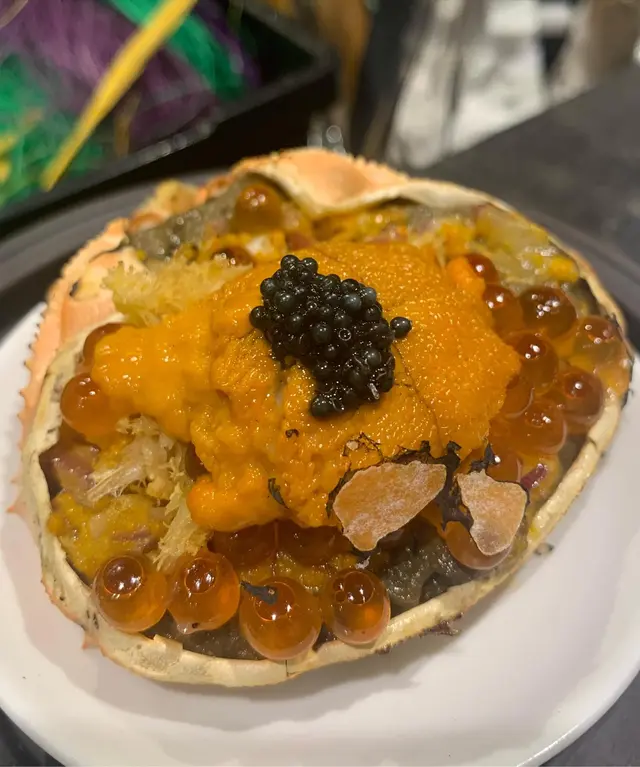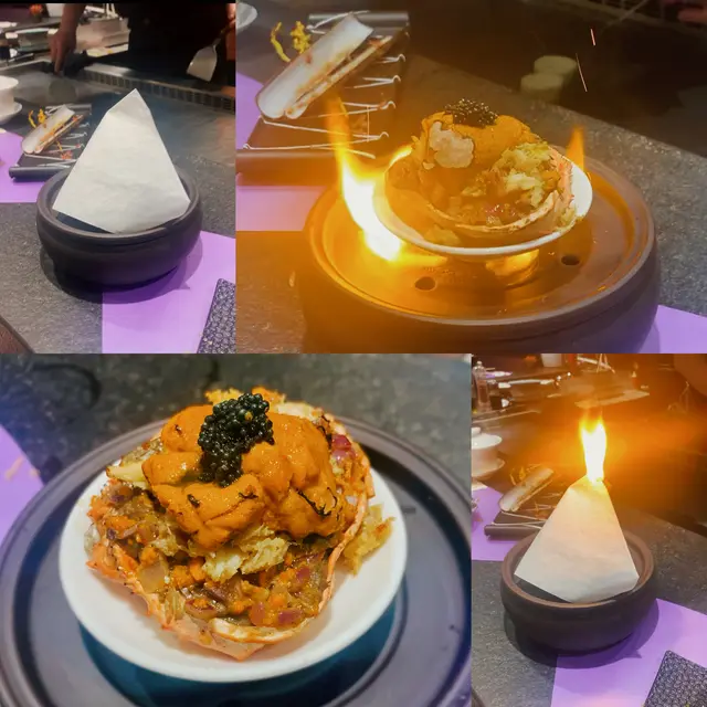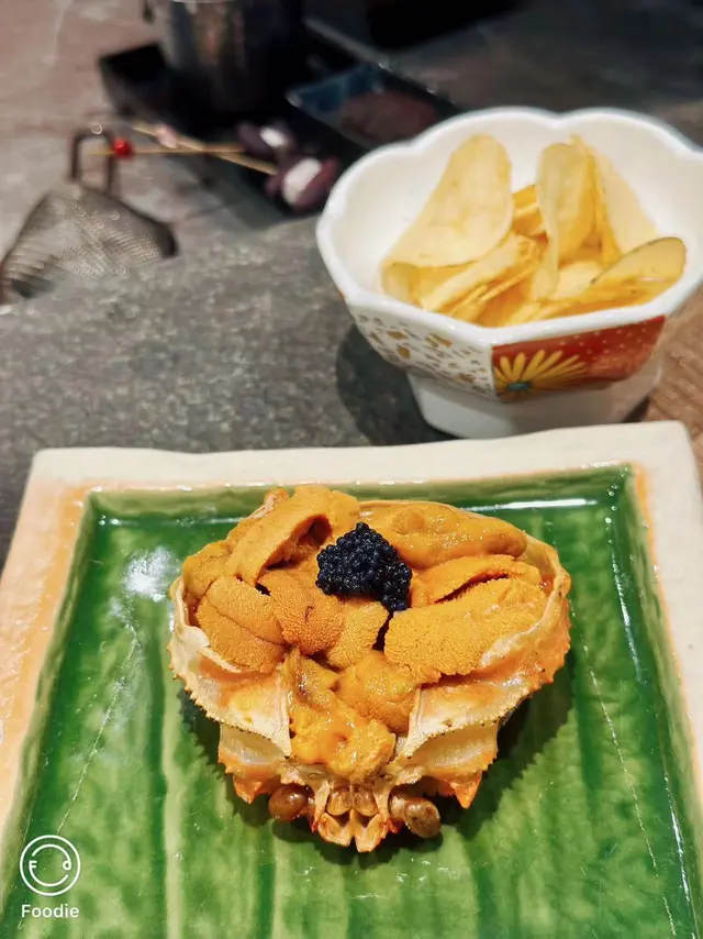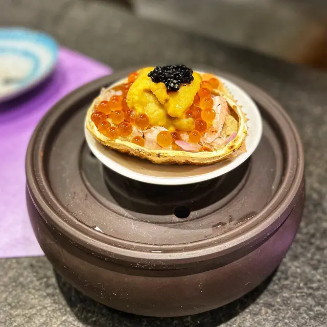 有次睇節目見海膽達人design左啲創意料理 賣相好靚勁吸引 以花旗蔘茶加青檸招待 非常有誠意🤩❣️火焰海膽甲羅燒原隻鴛鴦海膽活龍蝦廚師發辦 $1680🥢季節前菜便當盒勁精美嘅便當盒 放左磯煮鮑魚 日本柚子醬沙葛 明太子薯仔🥔沙律 大定櫻花蝦玉子🥚燒🥢季節沙律 - 日本青森縣王林蘋果蟹籽沙律🥢火焰海膽甲羅燒呢個真係勁浮誇 上面啲海膽成座山咁樂師傅仲一直堆 用火焰🔥形式登場非常吸睛 以薯片為器皿 蟹膏蟹籽海膽洋蔥粒加上脆卜卜薯片 口感食極唔厭🥢活龍蝦兩食(海膽醬芝士焗、海膽牛油蝦頭膏煮)一隻龍蝦分開兩種食法 加左海膽醬個邊濃郁入味 另一邊🦞龍蝦粒用左蝦頭膏牛油一齊煮 以墨魚汁意粉作麵底 拌麵形式更充分感受龍蝦香氣🥢香煎鵝肝配山芋餅慢煮鵝肝包裹住星鰻魚塊 多汁嘅外層軟綿綿嘅內心 面頭淋上黑醋 酸酸甜甜解濟 而中間放咗🫐連埋山芋餅夾住食 好似食緊夾心餅咁正🥢東星斑配焦糖西京醬嫩滑嘅魚肉撘上香甜嘅焦糖醬 呢個配搭好創新🤩脆片彷似魚皮 造型配搭非常吸引🥢五色燒野菜🥢特色紙包花膠蜆湯足料湯水 花膠腍身湯底清甜 唔會話油脂過重難入口🤓🥢蘭王椰菜花炒飯🥢焦糖多士🥢海膽雪糕用心自家製海膽造型勁cute 鹹鹹地有啲似海鹽味 混合蛋糕粒面頭放咗爆炸糖😍包埋紫蘇葉更突出雪糕鹹香❣️十八層海膽杯 A5和牛廚師發辦 $1680🥢季節前菜便當盒🥢季節沙律 - 日本青森縣王林蘋果蟹籽沙律挖空🍎再將蘋果肉切粒撈埋蟹籽沙律 無平時啖啖沙律醬嗰種油膩感 爽口果肉令整體更清新🥢十八層海膽杯杯內塞滿吞拿魚蓉 蟹籽 海帶 鮑魚粒 蟹肉 海膽 topping都放左一堆海膽😌混合後放於白飯魚乾片上 超級滿足🥢櫻花蝦北海道元貝用左蝦米 牛油 檸檬汁 蟹籽煮嘅元貝肉 每一啖都沾滿櫻花蝦🦐鹹香加上檸檬汁嘅fresh都幾開胃🥢鮑魚繪若西檸乾醬充滿檸檬香但鹹鹹地嘅醬汁同鮑片一齊煮 酸味味食極唔夠🙀🥢岩手縣威士忌A5和牛軟腍和牛肉醃得好入味 旁邊放左紅酒醃製嘅蘋果粒🤤牛肉多汁同解油膩嘅果肉相當match 🥢荔枝豚肉卷平時唔係好好荔枝嘅我 呢個竟然意外地覺得好食😋鐵板溫度將荔枝果汁迫晒出嚟 豬肉吸收變得十分juicy🥢五色燒野菜茄子 甜薯 南瓜 微辣嘅蘆筍 車厘茄做成車厘子做型好cute😙仲有一口棉花糖唔會太漏🥢特色紙包花膠蜆湯🥢蘭王椰菜花炒飯蘭王雞蛋🥚炒椰菜花飯 啱晒而家要減醣嘅都市人 用上雞蛋豉油 提升蛋味香氣 令香濃更香濃🥢焦糖多士🥢海膽雪糕…查看更多