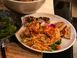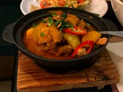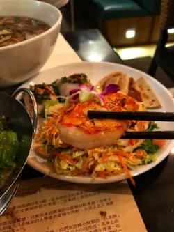 放假就諗住周圍行下,係附近行完,就諗不於係大坑搵下野食,因為六點時間都仲係早,所以都未算太多人,睇睇下就揀左間越南野食。我地六點左右入黎,但唔夠半個鐘已經坐滿哂。佢有單叫又有得叫套餐,套餐有大頭蝦套餐同埋火車頭套餐,見到火車頭套餐都幾岩食,所以就懶得再睇了,然後再加杯飲品,荔枝特飲。火車頭套餐都幾多野食,總共有六樣野,一個人都係188蚊。頭盤有大蝦柚子沙律,大蝦加左調味料再煎過,幾香口,柚子夠甜,沙津食落幾清新,開胃。扎肉就有四塊,同蝦一樣都係煎一煎過黎,香口好味D。同場仲有兩件特色蒸粉卷。之後就有馬拉盞炒時菜,我地驚太辣,所以叫左小辣。不過黎到都有小小辣,惹味小小。跟住就有咖喱雞配法包,咖喱味濃但唔係好辣,岩我地口味,咖喱雞有四件,煮到好腍入哂味。法包就暖暖地,用黎浸咖喱黎食一流。我覺得主角係火車頭招頭湯河,影相可能唔係好覺,但其實佢個碗勁大,兩個人既分量黎。湯底好有牛味,睇介紹有牛骨等十幾樣材料一齊煲。材料好豐富,有肥牛肉,牛肉味濃而且又嫩滑,仲有牛腩、牛丸同牛栢葉。加埋杯野飲一個人225蚊左右,性價比高既越南餐廳。…查看更多