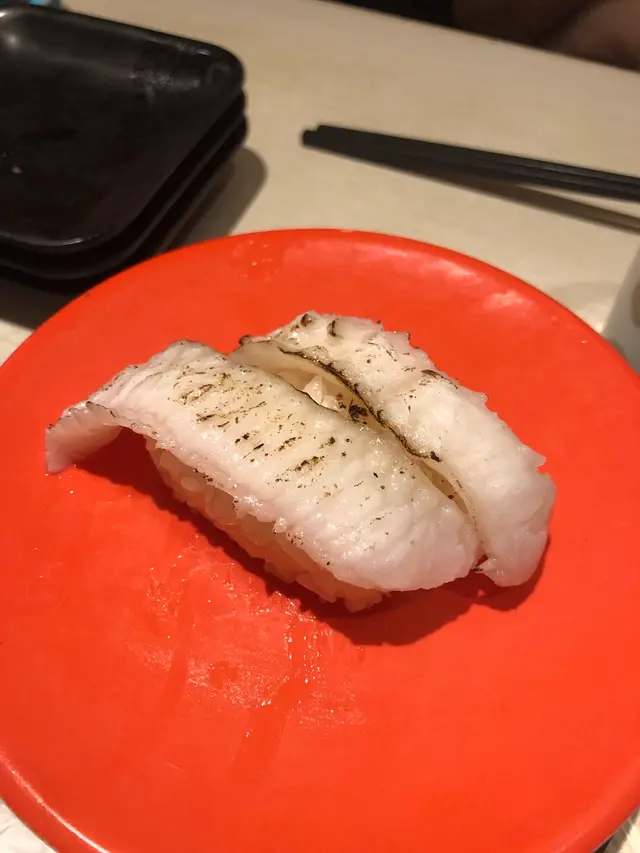 炙燒左口魚裙邊燒後左口魚比較煙韌彈牙但我個人比較喜歡沒有炙燒的沒有燒過的左口魚,較能食出鮮味