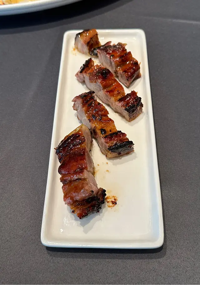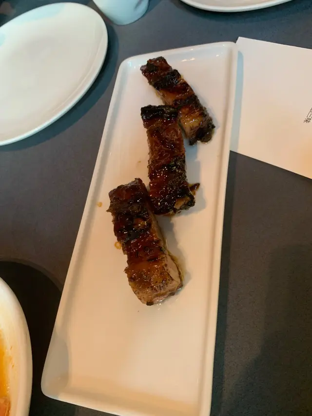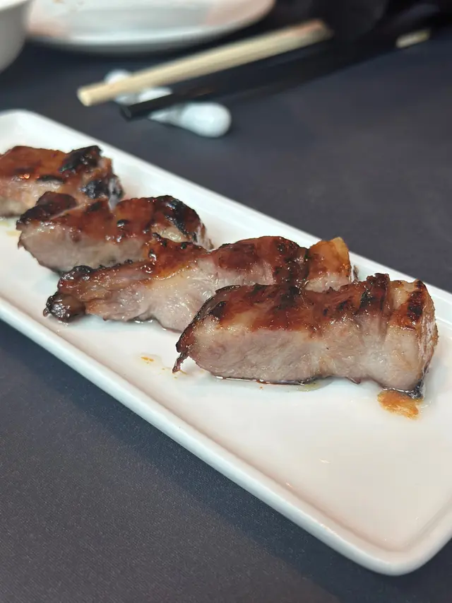 規定咗係叫set 至少48小時前要先揀好食啲咩 我嗰日係3個人食的~ set既份量好多 食到勁飽🤰🏼🤰🏼食物質素的確幾好 值得粒星🌟 不過環境比較逼 唔係太舒服 服務都未達到米芝蓮級數· 龍井菊花煙乳鴿 Smoked Baby Pigeon with Longjing Tea &Chrysanthemum的確食到淡淡茶香 肉味都重 皮亦夠脆口😋· 荔甫鴨盒Crispy Taro Cake with Smoked Duck炸得好鬆脆 少少油但未至於膩 芋頭蓉mix埋鴨肉很不錯! 🤩· 炭火厚切叉燒Thick Cut Chairman Style Char Siu 佈滿蜜汁 好香甜 調味屬於比較甜 炭燒味唔重 肉質帶有點咬口 唔韌同時唔會霉霉爛爛🥸· 🍲一口湯Cleansing Soup· 雞油花雕蒸花蟹配陳村粉Steamed Fresh Flowery Crab with Aged ShaoXing Wine, Fragrant Chicken Oil & Flat Rice Noodles其中一道最signature既dish🤩 花蟹有膏 肉嫩鮮甜 嗰汁帶有蟹膏味又有啲花雕酒香 撈埋陳村粉 闊扁掛汁又滑身 似唔油既河粉 推薦🤪🫶🏻 · 醬燒羊肋骨Grilled Lamb Ribs in BBQ Bean Paste超有驚喜🙂↔️ 應該係我食過最出色既中式羊肉!! 燒得啱啱好外脆內juicy 超嫩 羊肉重味 有膻味的! 唔會太多汁which我好喜👅· 南乳麵醬炸子雞Crispy Skin Chicken with Red Bean CurdMarinate皮微脆 肉都算嫩滑 未算話好juicy但調味ok 南乳醬另上 有明顯南乳鹹香 唔會太鹹~· 魚湯白木耳浸瓜絲Gourd Juliennes and White Wood Ear FungusCooked in Homemade Fish Broth相對之下呢個無咁特別但無咁heavy味道都好唔錯 魚湯幾濃郁 木耳絲同瓜絲帶有咬口 我自己幾鍾意呢個😌· 蟹肉鮮蝦蝦乾蝦醬炒飯Fried Rice with Crab Meat, Fresh Prawns, Sun-dried Prawns & Shrimp Paste好足料😭 好多蝦頭蟹肉 餸同飯可以話係1:1 同埋加咗蝦乾 食落好夠蝦味蟹味 鮮甜超超超好食!!! 😻· 甜品三味Desserts Trio〃〃〃〃〃〃〃〃〃〃〃〃〃〃〃〃〃〃〃〃〃〃〃〃〃〃〃〃〃〃😋 𝘵𝘢𝘴𝘵𝘦? 𝟴/𝟏𝟎 🥳 𝘦𝘯𝘷𝘪𝘳𝘰𝘯𝘮𝘦𝘯𝘵? 𝟳/𝟏𝟎🤑 𝘤𝘱 𝘷𝘢𝘭𝘶𝘦? 𝟳.𝟐/𝟏𝟎🤩 𝘳𝘦𝘷𝘪𝘴𝘪𝘵? 𝟕/𝟏𝟎〃〃〃〃〃〃〃〃〃〃〃〃〃〃〃〃〃〃〃〃〃〃〃〃〃〃〃〃〃〃📍 大班樓 …查看更多