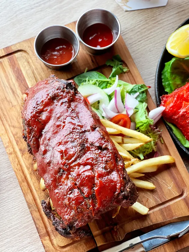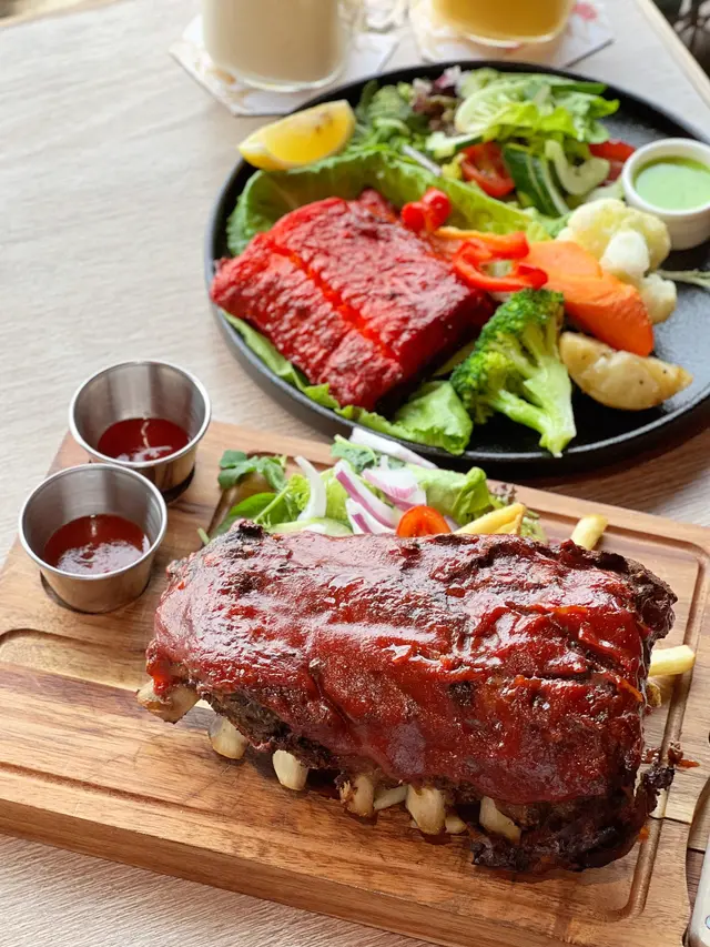走進「Harbourview Grill」,最先被吸引的是玻璃窗外的維港海景。日頭陽光普照,或是黃昏日落,都可以感受到香港維港的景色。毛孩們都知道北角有不少寵物友善商場和餐廳,「Harbourview Grill」更設有的戶外座位。讓大家可攜帶毛孩一起,邊食邊放電。🥑 1. 雞胸牛油果沙律 (Chicken Avocado Salad)餐廳用上新鮮生菜、大量牛油果片和烤雞肉組成豐盛的沙律基底,配以清爽香醋沙律汁一同拌勻。雞肉經香煎至嫩滑微焦、肉質不乾不柴,牛油果則軟滑濃郁,兩者完美結合,帶來層次感明顯的口感。🍖 2. 炭燒豬肋骨 (US Baby Back Ribs)豬肋骨經煙燻低溫慢烤,再刷上BBQ燒烤醬,上枱時色澤深褐帶光澤,醬汁分布均勻。一切開肋排,骨肉輕易分離,中間肉質保持濕潤細嫩,外皮微焦帶煙燻香、內芯卻足夠軟腍。另外配菜有大量脆炸薯條。誠意十足。 🍕 3. 經典薄餅 HVG Special PizzaHarbourview Grill 自家製經典薄餅,餅底薄脆可口,芝士可以「拉絲」,而餡料組合豐富,火腿、洋蔥、辣肉腸、青椒及菠蘿層層堆疊,每一口都同時嚐到菠蘿酸香、肉腸及火腿的鹹香、濃郁芝士香味。 🍎 4. 蘋果金寶 (Apple Crumble)蘋果金寶以傳統英式做法烘焗,新鮮蘋果切粒墊底,拌入肉桂及少量糖漬,再加上酥脆金寶餅碎焗至金黃,還會搭配一球雲呢拿雪糕。要留肚享用甜品呀。🍹 5. Detox Apple 喜愛健康清新口味的朋友,一定要嘈嘈Detox Apple蘋果特飲。以菠菜、青蘋果、西芹、鮮橙搾汁,可以沖淡膩感,為健康加分。🥂 6. Mancura Sauvignon Blanca Glass (Argentina)Mancura Sauvignon Blanca 入口帶有熱帶水果香氣,酒味清新,酸度適中,性價比超值。望着海景,享受美食。…查看更多