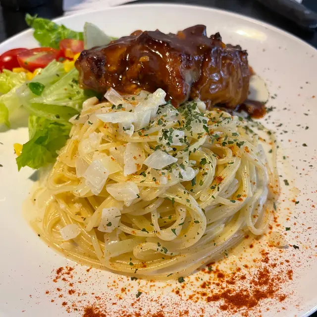 自從幾年前男朋友帶我食呢間餐廳,去開大埔都好想再食,可惜成日都大排長龍,今次終於的起心肝10:45去排隊,終於都比我食到!🤣餐廳入面位置都算幾迫,唔係話坐得幾舒服,不過為咗佢嘅黑毛豬,都唔介意啦!我哋兩個都係食炭燒黑毛豬 ($70)加$8轉意粉,因為呢個勁好多人叫,所以等候嘅時間都比較長~店員會先上咗個湯先,個湯就似正正常常嘅街坊西餐,冇乜特別驚喜~去到主角黑毛豬,佢個份量係好大塊,加上切開之後,佢嘅生熟程度啱啱好,食落去非常軟淋,亦都唔會覺得佢有一陣臭豬味😌而佢嘅意粉亦都非常有誠意,本身都撈咗啲白汁,成個意粉唔會好dry~當然跟餐都會跟返一杯飲品~我覺得呢個價錢食到咁大塊黑毛豬,都算係物超所值啦,食完呢份餐真係又飽又滿足🤤…查看更多