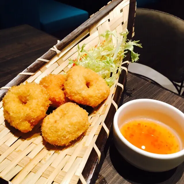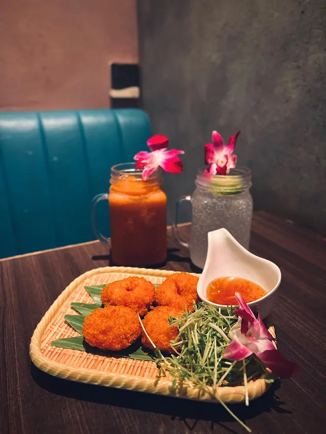 九龍灣德福廣場雲集多國美食,今次就來到由泰國團隊主理的泰廚房子 ,餐牌款式繁多,按照傳統工序制作菜式,以泰國當地口味來挑選食材和構思食譜,工業風裝潢簡約時尚,風格和一般泰菜餐廳的強烈泰國民族風完全不一樣。香茅鹽燒烏頭 $138將原條烏頭以燒烤的方式炮製,表面被粗鹽所覆蓋,肚內藏有檸檬葉、南薑和香茅,除了可以辟去魚腥味外,還可令魚鮮更為突出,魚肉雪白豐厚,口感嫩滑,沾上泰式醬汁,酸辣惹味。泰鮮蝦金邊粉 $98金黃色的蛋網賣相誘人,以大隻爽彈的鮮蝦點綴,包裹著豆腐乾、芽菜、蔥及泰國金邊粉,還可自行混合花生粉和辣粉,金邊粉幼滑爽口,甘甜酸香徐徐滲出,滴上青檸汁後,口感會更清爽也能消除油膩。沙爹串燒牛/雞 $72一客六串可選雙拼,比平時市面上的串燒更加厚肉,份量十足,每串都是啖啖肉,燒得表面帶焦香,肉質入味不鞋口,點些花生沙嗲醬更加惹味開胃。手打蝦餅 $78圓滾滾的外型看起來很像冬甩,沾上泰式酸甜醬汁,輕易打開疲乏的味蕾,外層炸得金黃脆口,將鮮蝦剁成泥、反覆摔打增加黏性,內餡扎實彈牙,飽滿鮮甜。泰式甜品拼盤 $48甜品外型精緻,一客拼盤就可試齊三款糕點:椰汁千層糕、椰汁西米糕和玫瑰花千層糕,千層糕口感軟糯煙韌,帶有淡淡的椰子清香,椰汁西米糕將西米的Q彈嚼勁與椰汁的濃滑形成對比,層次感豐富。泰式奶茶 $22可自選甜度和冰度,橘褐色的泰式奶茶口感順滑不澀口,具有茶葉香及煉乳的甜。青檸梳打 $28冰爽透心涼,炎炎夏日下確實是消暑良伴,將悶熱一掃而空。…查看更多