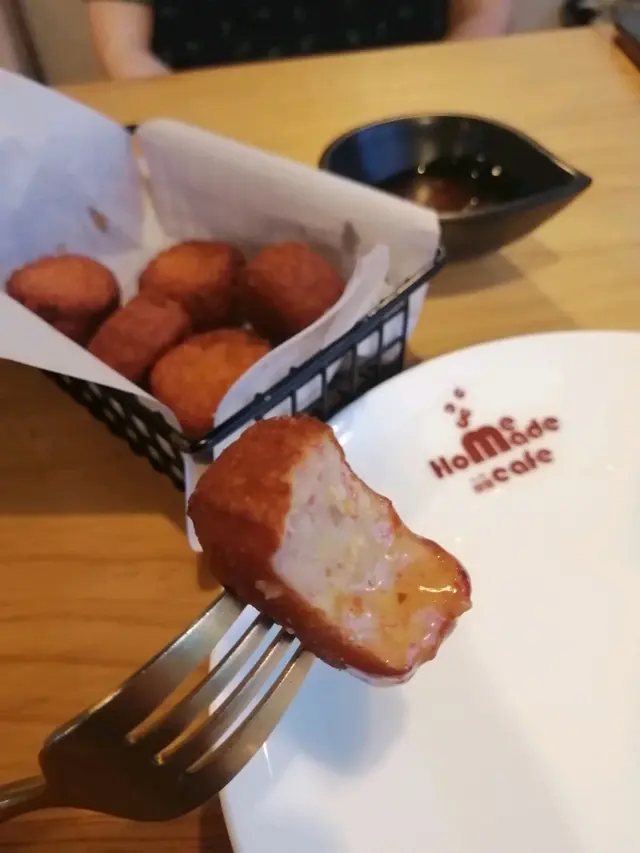 一間Board Game Cafe,位置闊落,坐得耐都好舒服,仲有好多桌遊想玩就玩,啱晒同朋友hea吓!😎 我哋叫咗二人餐,仲加咗凱撒沙律😋🍴🥗 凱撒沙律沙律菜新鮮爽脆,凱撒醬酸酸甜甜好開胃!🥗 醬汁唔會太濃,配上煙肉碎同麵包粒,增添咗咬口,作為開場真是一個清爽嘅開始!😊🍚 黑松露雜菇意大利飯二人餐嘅主菜有黑松露雜菇意大利飯🍄 飯粒軟硬適中,吸滿忌廉芝士醬嘅濃郁奶香,仲有黑松露嘅獨特香氣同雜菇嘅鮮味,食落creamy又唔膩!😍 雜菇均勻分佈,每啖都有菇類嘅鮮甜同松露嘅餘韻,味道層次好豐富!👍🦀 炸蟹餅跟住試咗炸蟹餅🦀 蟹肉鮮甜,口感軟滑,帶點香料嘅微辣味,配上旁邊嘅泰式酸辣醬,酸甜解膩。蟹餅大小啱啱好,作為小食真是一個亮點!😋🍕 西西里pizza另一款主菜係西西里pizza,用手拉pizza底,10吋大細啱晒二人share!🍕 餅底薄脆,烤得金黃,邊位有炭燒香。入面有辣肉腸、火箭菜同蘑菇,辣肉腸微辣惹味,火箭菜清新爽口,蘑菇增添鮮味,配濃郁蕃茄醬同芝士,拉絲效果一流!😜 🥭 楊枝甘露飲品揀咗楊枝甘露,冰涼涼好清新!🥭 芒果味濃郁,配椰汁同西柚粒,酸甜平衡,飲落好解渴。仲有芒果肉增加口感,夏天飲真是一個字:爽!😎🍯 熱檸菊蜜仲試咗熱檸菊蜜🍋 蜜糖甜度適中,飲落暖胃又舒服,喺濃味菜式後飲杯熱檸菊蜜,感覺好放鬆,啱晒一邊玩桌遊一邊飲!😊…查看更多