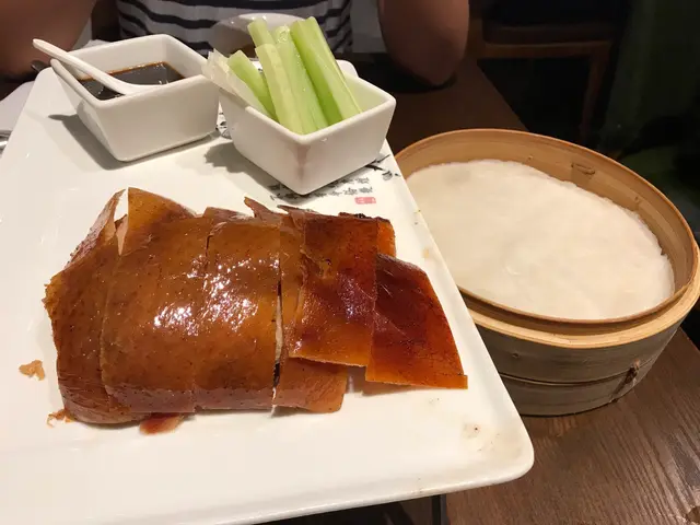 「美中鴨子」已經開業好一段時間,即使最近開放了領號碼籌的措施,店門外等候的人還是擠得水泄不通,當晚有等候的食客因為未到齊一半人數而不能入座,繼而對店員惡言相向。香港人,放輕鬆一點吧,服務業不易做,別把自己的怒氣發洩在別人身上。回正題,店舖裝修新式闊落,廚房屬於半開放式,除了看到烤鴨爐掛上了一隻隻肥美的烤鴨外,亦能看到廚師們忙碌的身影,可能因為座位遠離廚房,所以油煙味不大。雖然食客眾多可是店員反應非常快速,會主動添水。餐具方面也別具心思,用上了鴨子造型圖案和筷子座。因為漏單關係,片皮鴨等了接近45分鐘才送上來。餅皮厚薄適中,雖然用蒸籠盛載,但仍容易變凍。鴨皮和肉分離,沒什麼肥膏,肉質算嫩滑,吃起來啖啖肉,鴨皮脆身。尤其醬料出色,提升了整個味道的層次。兩個人吃到最後有點膩,大概四人分食半隻鴨會比較理想熱騰騰的小籠包,上桌時還是冒著蒸汽,皮薄多汁,餡料湯汁偏鹹。一人份的雲吞鴨湯有兩隻雲吞,幾塊鴨肉,奶白色的湯帶有輕微鴨味,但整體還是和小籠包一樣偏重口味炒飯顆粒分明,乾身,調味鹹淡適宜,只是金華火腿和鮮菌也不太見影。炒飯裡的青豆沒有草青味,也不會太硬身。美中鴨子主要問題是等候人數多,除了等候時間長,入座安排亦不算流暢。店員做得忙碌之餘,廚房又容易漏單。撇除以上的問題,其實食物水準還是不俗的,而且有提供大檯一家大細用餐,可惜等候時間太長了,可能吃晚餐第一輪會比較少人吧…查看更多
