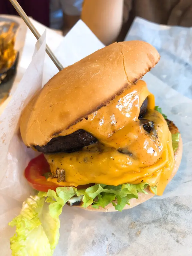 好彩嗰日等咗冇耐就有位~我叫咗一個烤菇芝士牛堡,加配薯格同凍檸茶,而朋友嗌左黑松露芝士牛堡同芝士牛堡,分別加配左炸燒賣同薯條。烤菇芝士牛堡咬落去第一啖,因為未食到中間,就覺得未有驚喜,但直到咬到去中間,就覺得好Juicy,烤菇嘅香味再夾埋濃郁嘅芝士,成個漢堡包既層次都好豐富,每一啖都好滿足!