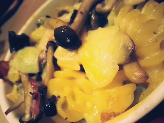 切碎的羅勒絲也令賣相更美觀,如果意粉加入少許煙肉伴碟,應該會更滋味!焗忌廉野菌螺絲粉也是我的最愛,螺絲粉焗得恰到好處,軟硬度適中。螺絲粉除了忌廉汁,還帶有芝士味,雜菇、野菌也鮮嫰爽口,配上煙肉,熱辣辣的感覺令人大快朵頤!
