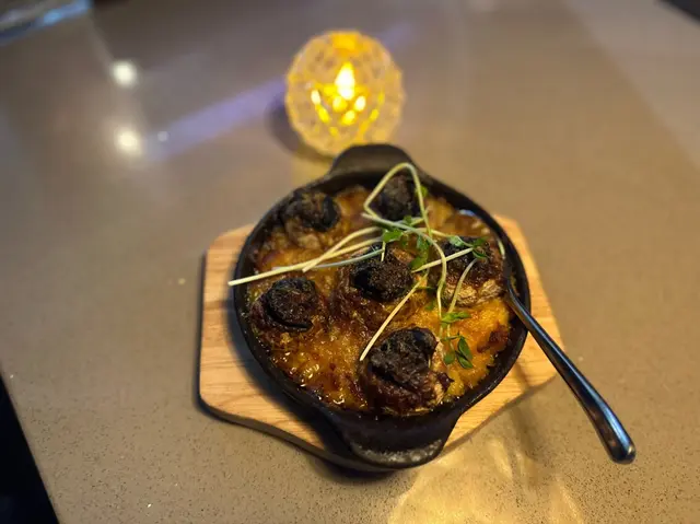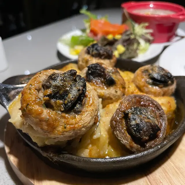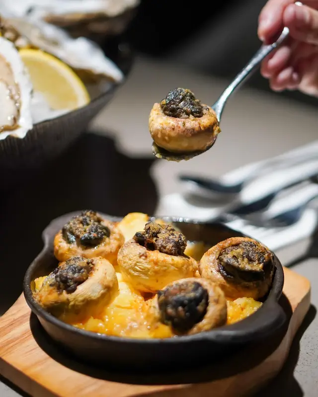 呢間餐廳設有新鮮生蠔吧,主打來自不同產地嘅生蠔、海鮮同西式肉類料理,亦提供各類酒品搭配🍷💗四道菜晚餐 ($438)🥗精選頭盤沙律 沙律清新爽脆,以千島醬調味,配上煙三文魚🍄香濃雜菌湯雜菌忌廉湯刻意保留大量磨菇碎,菌香特別濃🥩安格斯肉眼扒(300g)配薯菜安格斯肉眼扒煎至七成熟,但肉質連難嚼而且偏乾,伴上燒汁蘸點,配菜方面有烤薯角同黑醋沙律🍰是日甜品朱古力布朗尼蛋糕較紮實黏牙,朱古力味唔算太濃,而且偏甜☕️即磨咖啡或茶💗焗法式田螺 ($68)將田螺釀入鮮蘑菇,田螺鮮嫩有彈性,蘑菇依然多汁,入口滿滿香草同牛油香味🐚配以薯蓉底,食落有顆粒感同薯仔味,再加上微微辣油點綴🥔💗美式燒豬仔骨($198)豬仔骨搽上祕製醬汁後高溫烤製,肉質軟腍鬆化,一切就骨肉分離,非常香惹入味🍖伴菜同樣有烤薯角同黑醋沙律🥙…查看更多