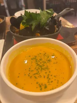 這次與朋友到訪這間西餐廳,一踏入店內便感受到輕鬆雅緻的氛圍。卡位設計舒適寬敞,椅墊柔軟有承托力,背板高度足以提供私隱感。燈光溫暖柔和,環境整潔,空間寬敞,整體給人一種輕鬆不拘束的感覺,是適合聚會或慢慢享受一餐的地方。前菜方面,我們先品嚐了香濃南瓜忌廉湯。湯身濃稠幼滑,帶天然南瓜的甜味與奶香,口感溫暖舒心,是一道相當出色的開胃湯品。另一款法式芝士洋蔥湯則味道更深層,洋蔥熬得軟嫩甘甜,湯底濃郁不膩,加上芝士,既香口又富層次,是喜歡法式風味的朋友不可錯過的一道。凱撒沙律(半份)則以清爽亮相,沙律菜新鮮脆口,凱撒醬調得濃淡適中,芝士香氣突出,配合香脆麵包粒,簡單卻很耐吃,清新之餘也能平衡後續主菜的厚重感。飲品方面,玫瑰蜂蜜果茶香氣自然,玫瑰味清雅不造作,入口帶微甜,茶香與果香相互平衡,是很治癒的一杯茶。而凍奶茶茶味與奶味比例恰好,香濃順滑,甜度適中,冰度控制得宜,是喜歡港式口味的客人會滿意的選擇。主菜部分,芝士焗肉醬意粉令人印象深刻。意粉煮得軟硬適中,肉醬帶濃厚的番茄與肉香,與焗得拉絲的芝士完美融合,每一口都充滿濃郁而舒適的味道。另一道黑松露忌廉魚柳焗飯則更顯高貴氣息,忌廉醬香滑不膩,黑松露味道馥郁卻不搶味,魚柳細嫩且與飯粒相當合拍,是一道令人會想回味的菜式。焗薯皮拼盤金黃香脆,外層微焦帶香,內裡軟綿細滑,每口都充滿濃郁薯香。搭配蘸醬,讓味道更添變化。份量充足,無論分享或獨享都適合,是一款簡單卻令人回味的小食。最後的是日甜品蛋糕為整餐畫上甜美句號。蛋糕質地鬆軟,甜度控制得宜,不會過膩,作為結尾剛剛好。總結而言,這間餐廳無論環境、服務還是菜式質素都相當穩定,適合三五知己相聚、悠閒用餐,值得再次光顧。…查看更多