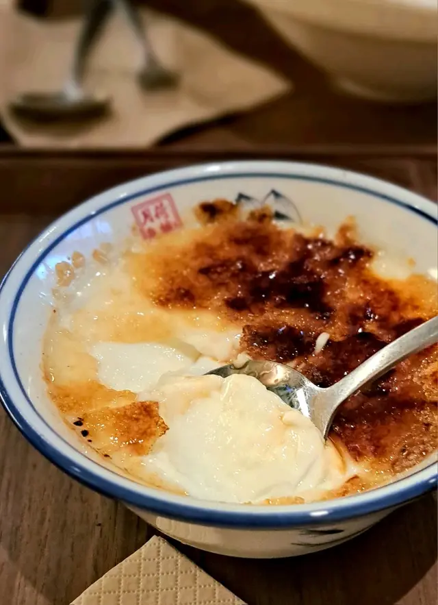 前兩日同朋友喺銅鑼灣食完飯想再搵個地方坐多陣,就去左波斯富街新開嘅龍塘坊食糖水,星期五晚9 點幾到大約排25 分鐘,店舖入面都少逼,但算非常整潔。Menu 選擇好多,除左傳統嘅中式糖水之外,都有雪花冰,巴斯克芝士蛋糕之類!我揀左焦糖娟姍雙皮奶,朋友就揀左招牌蛋白杏仁茶同羽衣甘藍菠蘿汁,焦糖雙皮奶其實就係傳統嘅雙皮奶上面加一層creme brulee 嘅焦糖,雙皮奶唔算太甜,所以同焦糖一齊食都唔會擔心太甜/ 太漏。而杏仁茶就好濃嘅杏仁味,上嘅時候都仲係熱辣辣。羽衣甘藍菠蘿汁由於菠蘿味比較重,所以飲落冇好青嘅味道,如果食得太飽唔想再食糖水,呢杯健康嘅飲品都係一個好選擇!呢間糖水舖雖然唔算坐得咁舒服,但位置非常方便而且性價比頗高,期待下次返去試其他甜品 ❤️…查看更多