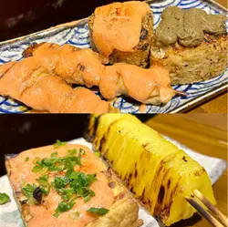 每次來這間串燒店都好忙,因為兩版紙寫滿百款串燒,樣樣都咁好味,選擇困難症發作,真係好難揀。餐廳好旺場,八點九點依然坐無虛席,環境唔算靜,因為大家都開人食,放聲傾計氣氛高漲。焦糖鰻魚玉子燒 $28玉子燒外脆內軟,夾著肥厚的鰻魚肉,甜美可口,口感層次分明。福岡味噌松板豬 $28豬頸肉爽脆,味道非常甜美。蒜蓉燒生蠔 (兩隻) $48蠔肉超肥美,蒜香惹味,大大隻食一隻都好滿足。汁燒免治雞肉軟骨棒 (付月見) $36雞肉棒鬆軟,搭配蛋汁,口感絕佳,十分美味。豚肉節瓜波板糖 (付月見) $38波板糖大塊,豚肉片包裹著節瓜,啖啖肉不油膩,沾上蛋汁美味。焦糖青蘋果鵝肝多士 $108多士厚身,外脆內軟,鵝肝厚切入口即溶,搭配青蘋果片清甜,雖然價格稍貴,但品質極高,讓人滿足。鹽燒白鱔 $48鱔肉爽口彈牙,燒皮香脆,鹽燒調味十分惹味。黑糖燒菠蘿 $18菠蘿香甜多汁,外面有薄脆的黑糖面,作為甜品的結尾最合適不過。泡菜五花腩 $28五花腩啖啖肉,面層好多泡菜,好有韓式風味。鹽燒雞皮 $22雞皮薄薄大塊,口感脆卜卜,油香四溢,雖然有點邪惡,但非常好食。蟹肉芝士最中餅 $48最中餅外酥內軟,夾著蟹肉和芝士,味道濃郁。鹽燒鮮三黃雞腿肉 $28雞腿肉軟嫩多汁,外皮香脆,鹽燒的調味也非常惹味。鹽燒雞軟骨 $18雞軟骨口感爽脆有嚼勁,口痕最啱食。鹽燒A4官崎和牛 $58牛味香濃,油脂豐富,入口即化,鹽燒調味非常好食。厚切鹽燒牛舌拖羅 $48牛舌爽口彈牙,鹽燒的味道非常惹味。惹味蜜糖三黃雞全翼 $28雞翼燒得剛好,肉質軟嫩多汁,甜辣惹味。芝士黑醋無花果 $58無花果甜美,加上黑醋,撈埋芝士和松子仁一起食,口感豐富幾特別。…查看更多