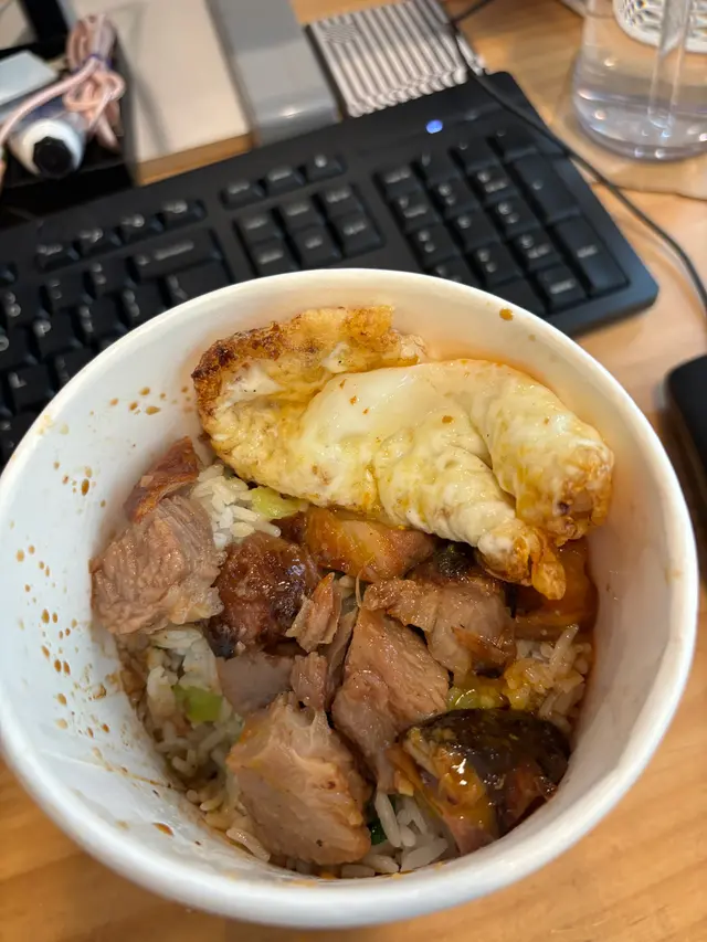 🥡🥢🍚外賣叉燒飯專門店▫️以下為OpenRice外賣自取價呢間店只做外賣,主打港式叉燒同烤雞飯,味道都好多元化,有焦蜜、爆蒜、青咖喱、柚香、黃金、辛麻6種口味供選擇。🆗焦蜜叉燒菜飯 -$54飯可選白飯或菜飯,菜飯吾洗加錢,轉沙律就要加$5,菜飯嘅菜應該係小棠菜,大大粒撈埋落飯有咬口,感覺都健康d,但飯有d濕,可能因為醬油落晒底。盒飯用紙碗上,份量好大,完全可以當2餐食,上面有隻荷包蛋,煎得好靚,個邊脆得黎中間仲係流心,叉燒切粒上,都好多粒,唔會好肥,但焦味蜜味都唔夠濃,冇想像中甘吸引。…查看更多