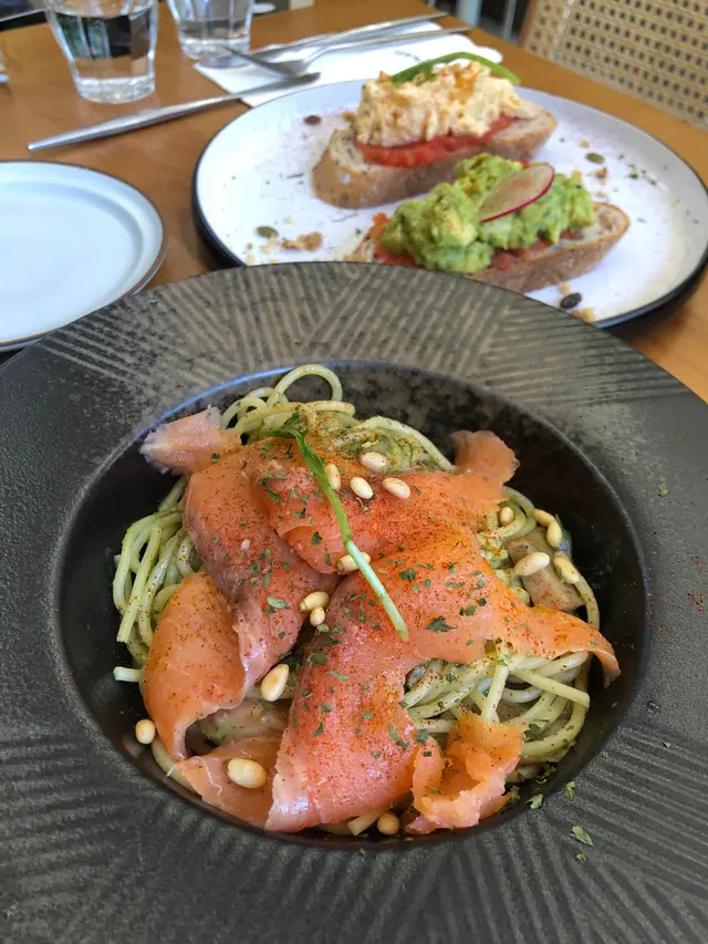 網上推介此間新進駐型格Cafe,路過荃灣便去碰下運氣。在店外見有位,入門查詢後,負責接待店員告之如果中午十二點的預約在十二點零五分後還未到,便會讓我們入座。心想還有五分鐘便十二點,稍等也無妨。但店員卻要我們在烈日當空下在門外等,有少許無奈。更奇怪的事接著便發生了,未到十二時,店員將另一枱客人轉至原本讓我們等候入座的枱。跟著,才安排我們入座。究竟他們是否真的有客人預約了,還是已入座的客人突然想轉枱。入座上餐後,終於明白為何他們要轉枱了,枱面真是太少了,放了兩碟食物加一杯飲品已好迫。作為一間Cafe,用餐感覺真的一點也不舒服。如果只是點一杯飲品雖然枱面空間還可,但樓下的間格真的一點型格感也沒有。樓上只有數個座位,打咭位又難求😂。食物款式也比較少,原因是原材料種類太少了,食過bunch還可。之前已經詳閱了其他食評,避開了一定中伏的選擇,如露荀真的比竹筷子還幼只得三條🤭。煙三文魚口感不錯,不算咸。意粉也軟硬適中,只是醬汁太少了,不夠惹味。吐司外皮有點脆,中間的麵包是軟軟的。牛油果和紅菜頭也算新鮮,可惜又敗在醬汁上,一點蕃茄味也食不出。究竟是廚師鐘意清淡無味,還是吝嗇醬汁😅。作為一間Cafe,有自己獨特的拉花。估計是用拉花膜做出來,但勝在選了比較少見的飛馬,這番心思值得加分。焙茶味又夠濃,可惜環境太迫了;不然下次路過可飲杯茶食過甜品,享受一下輕鬆的時刻。但這般的間格,真是讓人提不起勁。如果這客意大利芝士餅加上咖啡酒便可以有五星了,在新派製作中,這是我食過覺得最好味的😋。層次感分明,濃濃的可可粉配上軟滑的芝士,還有靈魂人物手指餅。很多新派製作,也剔除了手指餅,令整客甜品沒有了靈魂。…查看更多