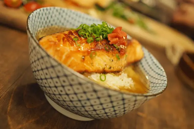 小店總共有兩層,樓下幾張細枱,牆身有唔少乾花擺設,幾舒服!樓上頗有特色,有幾張長枱,四周有啲寄賣既乾花擺設同小玩意,客人要坐榻榻米,小小日系既感覺!留意番,餐廳係自助點餐,叫野食要先落樓下,水同餐具都係要自己拎啊!呢度提供既餐點唔多,我叫番上次食過覺得好食既照燒三文魚茶泡飯