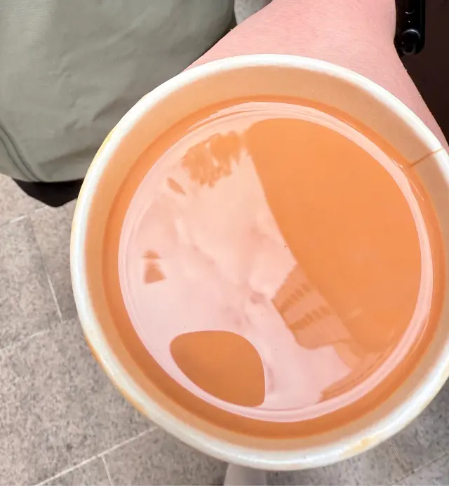 今天到了灣仔春園街,試試「我杯茶」的熱奶茶。店舖不大,堂食位置不多,一來到鋪頭,已經見到一條人龍,很多遊客在等候到店內堂食。如果外賣的話,店員會指引你,直接到店內收銀處點餐,不用排隊。單點了一杯經典熱奶茶☕️($22),不少遊客也點凍奶茶🥤和菠蘿包。除了奶茶,也有咖啡、茶走、啡走、鴛鴦、檸檬茶🍋☕️,size 有細和大選擇。