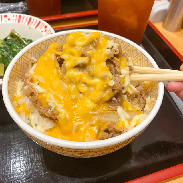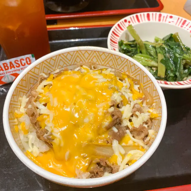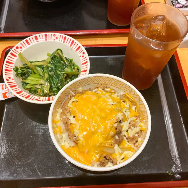 SUKIYA すき家主打平價牛肉飯,所以經常見到有唔少人排隊,我去嘅時候係平日2點,依然有條長龍。•🥢 熱溶三式芝士牛丼 $45 (M size)牛肉飯配芝士都有兩種選擇,可以揀有無熱溶芝士,呢個牛肉飯揀咗配熱溶三式芝士,溶咗嘅芝士鋪滿牛肉上面,包住啲牛肉,好易同飯撈勻,芝士同牛肉份量都唔少,芝士嘅鹹香味好濃,飯入面都好多醬汁,食到最後會有啲膩同濃味,所以正常食量嘅叫M size都好足夠啦!•🥢 三式芝士燒肉丼 $48 (M size)燒肉丼嘅牛肉同普通牛肉飯嘅牛都有啲唔同,燒肉嘅會大塊大啲啲,肥膏部分會少啲,有燒肉汁嘅味,牛味都比另一個濃啲啲(不過唔知芝士份量有冇影響到🙈),唔加熱溶芝士都會有三式芝士,個飯嚟到即刻襯熱撈都可以撈到,不過芝士嘅份量就比有熱溶嘅少啲,芝士味無咁濃,但燒肉汁本身都有味,芝士唔咁搶會好啲😛 另外我覺得牛肉飯入面嘅洋蔥煮得唔夠淋,感覺爭咗少少🤏🏼•🥢 套餐: 菜/沙律/炸雞+飲品 +$10加咗一個菜一個沙律,本身以為菜係冷盤前菜,但原來係蒜茸炒通菜,中式調味炒法🤣 不過呢個通菜就太鹹啦👎🏻 沙律就配胡麻醬,感覺日式啲,配牛肉飯都夾啲😉飲品可以揀紅茶/罐裝汽水/麵豉湯~…查看更多