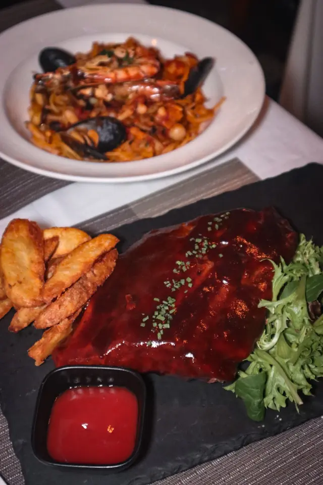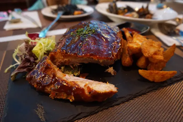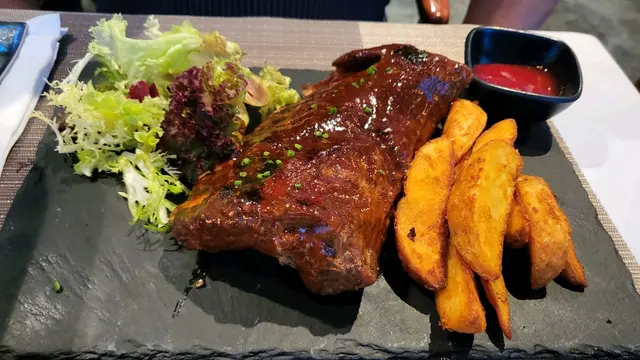 係一間主打食法國菜嘅餐廳,價錢好親民,而且係落地大玻璃望市景🥹廚房係開放式廚房客人可以欣賞廚師煮嘅法國菜,廚房由Vito主理,擅長低溫慢煮。豬肋骨煮得好軟糯,而且好入味,係食過咁多間幾唔錯嘅豬肋骨,旁邊配嘅薯條都冇失準,外脆內軟,呢個價錢好值。肉眼扒🥩就還好,可能有啲overcook,所以有啲韌,個size都有點細,但係好彩食完都啱啱好飽肚,而且呢度啲service都幾好👍🏻生蠔係值得一叫嘅,味道好新鮮,雖然唔算好肥美,但係值得一試,當時亦都係臨近聖誕,所以都佈滿好多聖誕裝飾🎀…查看更多