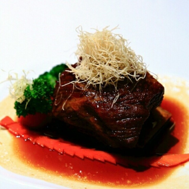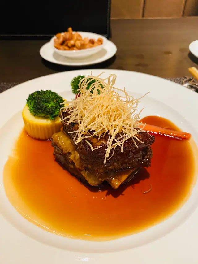 新同樂魚翅酒家 尖沙咀 米之蓮🌟🌟新同樂開業於1969年,在2011年取得了米之蓮🌟🌟🌟榮譽,作為首間非酒店的三星食府,在之後的數年都連續獲取🌟🌟榮譽至今。作為本人的摘星之旅香港站首間食店,經多次網上研究還是被他的百花脆皮乳豬件及西班牙紅蝦竹笙蝦湯蒸蛋白配港式伴料深深吸引,於是選擇了新同樂為首選。但食後略為有點失望驚艷道略為不足,或許是個人口味,或許是當天火喉問題,或許是本開打方式錯誤,或許下次我應該要從魚翅招牌菜開始🤔。——————————————————百花脆皮乳豬件:蝦膠釀入乳豬皮再炸,乳豬皮脆鬆化可口,豬油脂味重,但蝦膠過為乾身唔juice,有點硬唔彈牙,蝦肉有點老,與期待有差別,有點失望。黑魚籽雲腿圍蝦多士:蝦多士配金華火腿真的第一次食,第一口食口感是咸及硬,蝦肉是原隻蝦點上蛋黃炸,有少少🤏過左火喉。食第二件咸味習慣左就感覺無咁咸,包皮有甜味滲返出來比第一口好食。不過整份都經過油炸處理較為油膩,手沾上不少油漬。蝦多士的碟子有明顯花痕污漬,個人什少在高級食府看到。西班牙紅蝦竹笙蝦湯蒸蛋白配港式伴料:作為第三道上場,終於感覺到岩心水😋。蛋白高湯蝦味濃郁香口,火喉剛好蝦肉蛋白生熟在剛口的位置,紅蝦蝦味重,有蝦膏配上蛋白最高,竹笙爽脆索派。這是一道可以再點的菜式。燒汁乾煏牛肋骨:乾煏六小時牛肋骨肉質唔韌唔老,易入口重牛味,即使是老人家也可以食進口的肉質,配上自家製燒汁,是一個好吃的菜色。黑魚籽豆腐蓉蒸星班球:雖然不是點套餐,但這不是加點的啊,這道較為清淡的菜竟然在紅蝦及牛肋骨兩道較濃味的菜後面,瞬間好吃道降低不少。這是一個低級的錯誤😵💫。魚肉及豆腐蓉在金華火腿、蛋黃及魚籽下淡淡咸香味。…查看更多