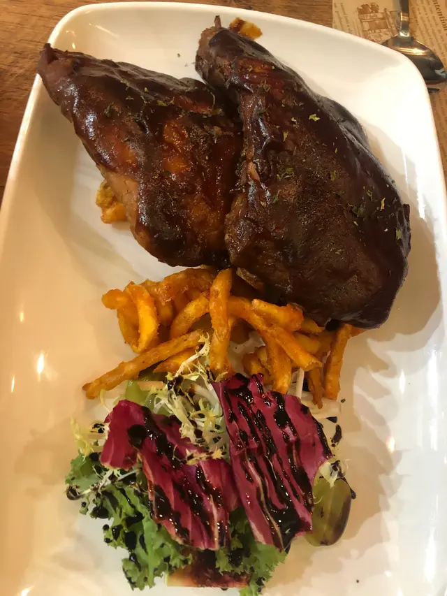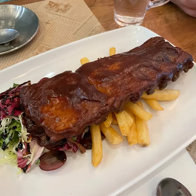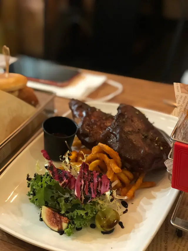 環境/設施-小店約14座位,檯偏細,裝修頗有特色特色-以下必叫菜式推薦1. 蜜椒雞亦:一客有6隻,炸脆皮配蜜糖黑椒粒,香口惹味!2. 燒豬肋骨:不似美式可以鬆化到拆骨,但肉質保持質感,食到係有不同層次,配上微甜微酸的醬汁,十分喜歡。3. 必叫!鎮店名物!手打牛肉漢堡:我地叫原味同bbq,手打牛肉漢堡趴大大塊,肉質彈牙,肥瘦均,食肉獸一大滿足4. 炸魚柳配薯條大大條,脆漿厚薄剛好,魚肉非龍利柳5. 意粉正常味道,面條軟硬適中,份量為一人份量6. 燒雞頗嫩飲品推薦1. 雜果梳打2. 青檸梳打人均價格-hkd220評分-8/10…查看更多