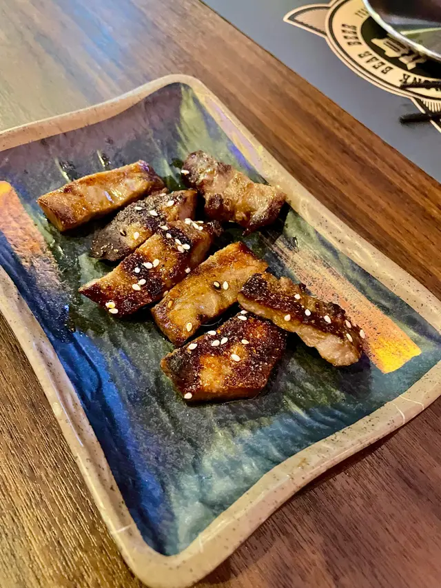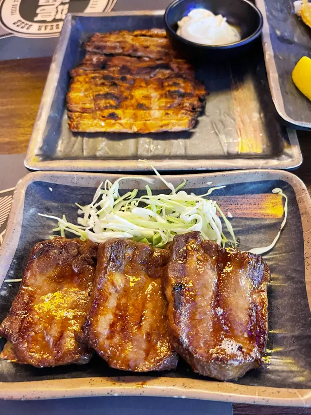 餐廳:鴻啤啤串燒地點:尖沙咀金巴利道菜式:串燒餐牌:肉類,海鮮類,蔬菜類,錫紙類,開胃小食,麵食,飲料,酒類招牌風味烤豬手 $58一隻 另加一招牌風味烤豬手 一大隻切開兩份容易食,燒得皮脆而入面好淋,骨膠原重,面頭灑上香口孜然粉同蔥花,味道好惹味。燒特級牛舌芯 $69一份 另加一燒特級牛舌芯一份十二條,切得呈長條形,口感外脆內彈牙。味道頗濃,燒汁味鹹香。燒鮮白鱔 $76一串 另加一燒鮮白鱔一串三件,燒得皮非常脆,而肉非常嫩又多汁,魚肉味道調得好好,少少甜帶少少孜然味,伴少少椰菜絲沙律可解膩。燒日本廣島蠔 $28一隻 另加一燒日本廣島蠔兩隻起。連殼上,殼都燒得熱辣辣。蠔好大隻又厚肉,又嫩又多汁,個蒜蓉蔥花芫荽汁好好味,下底墊有椰菜絲沙律。秘製蒜蓉烤蟶子皇 $68 另加一蟶子皇果然好大隻,連殼上,面頭加上充足蒜蓉同蔥花。蟶子非常鮮甜,好爽口彈牙,正。下底伴有椰菜絲沙律,撈蒜蓉汁一齊食都好好味。以上都係推薦菜式,呢度採用生燒燒法,需時等候,不過食材新鮮可口。總括而言,今餐食物質素唔錯,價錢唔算貴,小店座位環境都唔差。…查看更多