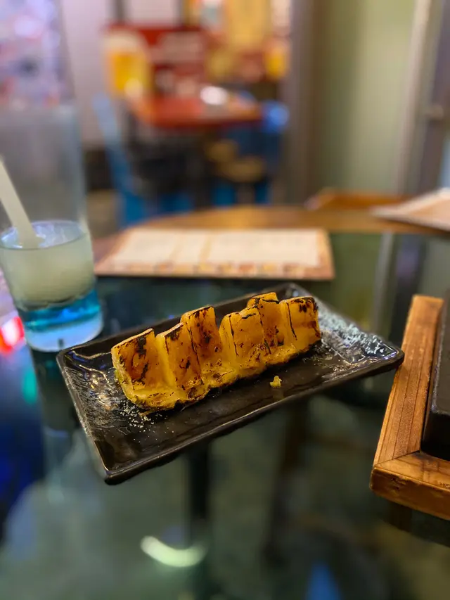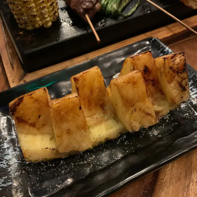 由朝早辛苦咗一日到七點,為嘅就係喺呢刻食餐好嘅慰勞自己!串燒店氣氛好重要,呢度有得睇波有得聽歌,夠晒Casual自在。串燒種類多,肉類、海鮮、蔬菜都齊晒,唔想咁heavy仲可以叫烏冬之類嘅主食。鍾意海鮮嘅人一定知蒜蓉燒係最香最鮮。珍寶帶子好大隻,肉好厚,燒完都仲好juicy。粉絲吸晒汁當然係好食啦!串燒肉熱石呈上,keep住嗞嗞聲~牛舌係去到邊都必食嘅串燒,因為牛味濃得嚟又爽口,燒起嚟特別焦香,而且唔會太油。呢度喺豬頸肉係厚切嘅,沙嗲醬汁味道濃陏,甜甜地又有花生香。龍躉卷係呢度喺特色菜。燒過嘅黑豚肉脂肪半溶,脆脆地,醬汁焦糖化,龍躉冇刻意調味,味道主要來自豬肉。而魚肉都大塊,燒完都唔鞋。燒菠蘿賣相有趣,有落過心機。雖然焦糖脆脆地幾得意,但焦糖外皮再加埋加熱後變甜嘅菠蘿,整體對我嚟講實在太sweet喇...玉桂味亦被搶focus。羊架熟度剛好,肥瘦適中,有油香得嚟又啖啖肉。…查看更多