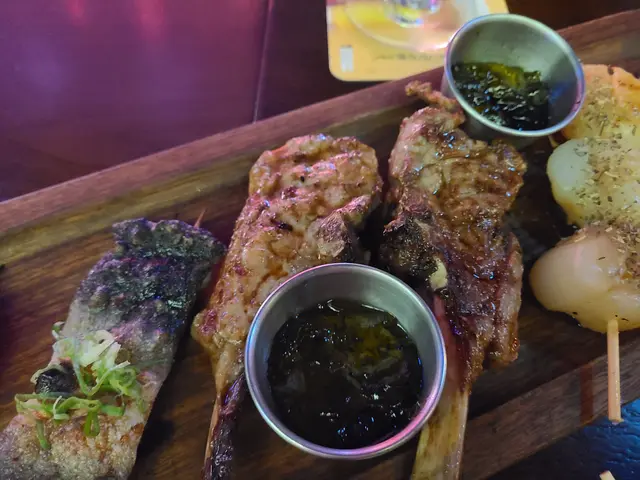 餐廳:芝加哥串燒酒場地點:中環榮華里菜式:串燒酒場餐牌:多款酒類,包括啤酒,香檳,紅白酒,中國白酒,威士忌,清酒,梅酒,雞尾酒等。食物有主食,冷盤,牛類,豬類,鳥類,蔬菜類,海鮮類,佐酒類,羊肉類,甜品。都有人氣串燒組合。落單用QR code。先叫兩杯雞尾酒。Screw Driver $108 另加一呢杯Screw Driver係Vodka加橙汁,味道甜甜地,都容易入口,入到喉嚨先火燒,面頭加上一片果乾同薄荷葉。Cuber Liber $108 另加一呢杯Cuber Liber就係Rum加檸檬汁同梳打水,味道更易入口,甜甜地少少微微苦,基本上酒味唔濃,好飲。面頭加上一片檸檬。今晚叫左勁多款串燒,記得先選辣度。好多串燒一齊上枱,好震撼。左起炭燒牛板腱 $49 另加一炭燒牛板腱一大片切開多件好易入口,肉質好嫩,牛味濃又多汁,另配燒汁,可令入口更濕潤。燒羊架 $39 另加一呢個價錢超抵食,羊架好大隻,肉好嫩口,都唔算肥,完全唔蘇。伴有薄荷醬。招牌無骨白鱔串 $58 另加一招牌無骨白鱔串一串一大條,燒得皮脆肉彈牙,面頭加上大量蔥花。鹽燒牛舌心 $33 另加一鹽燒牛舌心一串四件,好彈牙。伴有檸檬件。左起宮崎去骨雞腿 $42 另加一宮崎去骨雞腿一客一大塊切開入口size,燒得皮薄又脆口,肉好嫩,好味道,面頭灑上大量味粉。另配燒汁。極品羊西冷 $38 另加一極品羊西冷一串四粒,食落啖啖肉,味道少少蘇。燒汁牛仔骨 $48 另加一燒汁牛仔骨一客6大片。肉質嫩口,味道調得好,另外配燒汁。左起限量燒新鮮魚卜 $35 另加一限量燒新鮮魚卜一串兩個,口感特別,少少章口痴牙,孜然粉味好濃。燒汁極品牛頸脊 $39 另加一燒汁極品牛頸脊一串多件,好薄身,味道口感似肥牛,較乾身,面頭加上大量蔥花。蒲燒鰻魚串 $29 另加一蒲燒鰻魚串一串四件,口感好淋,加有豐富鰻魚汁。招牌燒牛骨髓 $29 另加一我第一次食牛骨髓,口感好淋,完全無內臟味,面頭加上好多蔥花。韓式牛肋肉 $29 另加一韓式牛肋肉一大串肉,加有適量燒汁,味道唔會太辣。一口和牛串 $29 另加一一口和牛串一串四粒,食落啖啖肉,都好嫩口。椒鹽薄燒白鱔 $28 另加一雖然白鱔薄少少,但係都好厚同彈牙,面頭加上好多蔥花,椒鹽味適中,唔會過鹹。炭燒豬頸肉 $22 另加一炭燒豬頸肉一串五件,食落非常爽脆,半肥半瘦,味道唔錯。蜜汁燒黑豚肉 $42 另加一蜜汁燒黑豚肉一大件切開入口size,連少少骨,燒得好嫩口,食落啖啖肉,豬味唔錯,另配蜜糖可以令入口味道更甜。香蒜蔥花廣島蠔 $32 另加一香蒜蔥花廣島蠔一客一隻,蠔連殼上,蠔身都多汁淋滑,面頭加上適量蔥蒜。食物可揀辣度,我揀左BB辣,味道都好惹味,個別串燒孜然粉味就重d。酒吧環境唔錯,好有氣氛,好適合中環收工之後黎Happy Hour。價錢都唔貴,叫左咁多野食到飽飽大滿足。…查看更多