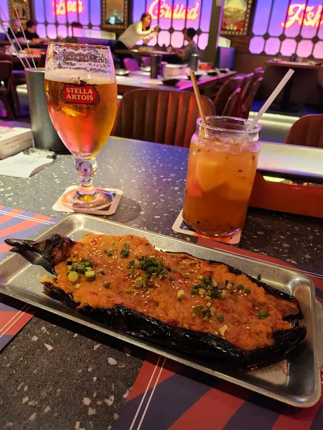 位於荃灣沙咀道嘅漁樂場,真係一間好特別嘅餐廳!好耐未試過餐廳內面有歌手註場,由七點鐘開始就有live music,而歌手唱嘅歌都相當耳熟能詳;餐廳主打嘅烤魚亦都做咗十分出色,味道有五款選擇,可辣可唔辣!魚都有兩款選擇;我和朋友選了秘製醬香烤江團魚,和一些串燒,如香辣牛肉、羊肉和五花腩等!而食串燒當然唔少得啤酒啦!除啤酒外我們再加了一杯超級水果茶和大大的燒茄子!Stella生啤香醇清新用來配襯串燒簡直是絕配,而超級水果茶又有不同嘅生果放於茶內,用來化解串燒嘅油膩十分到位!大大條嘅江團魚配上醬香汁,真係香滑惹味!到七點歌手出場唱一些我們耳熟能詳的歌曲,將餐廳嘅氣氛推上熱點!相信每個客人都可盡興而歸。…查看更多