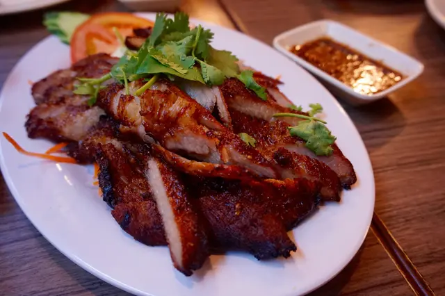 九龍城一向有小泰國/小曼谷之稱,去到九龍城,就好似default左一定係食泰國野咁樣。今次特登同男朋友黎到近近地既九龍城,發掘「小曼谷」以外既泰國餐廳,發現原來要多d跳出自己既框框,先會有機會試到新既好野門口雖然有d up dup,入到去係好多大枱,好適合人多既大家庭一家人黎呢度食下泰國野生蝦又係必食,同小曼谷差唔多價錢。配埋生蒜同辣椒,仲有一定要點酸酸地既醬汁,成個combination昇華左原個南瓜入面有南瓜咖喱,可以用隔離嘅軟殼蟹點嚟食。軟殼蟹炸得好香脆,咖哩入面有南瓜肉,仲有其他香料、配料,估唔到2樣野夾埋會咁新穎特別。咖哩份量最多,點哂d蟹仲淨返好多可以送飯食份量真係大大份,豬頸肉燒得非常香口,調味惹味!一份靚既醬汁係會令原本已經非常出色既菜更加出色,呢碟醬汁就做到野啦!點左先食,層次多左,令豬頸肉更香…查看更多