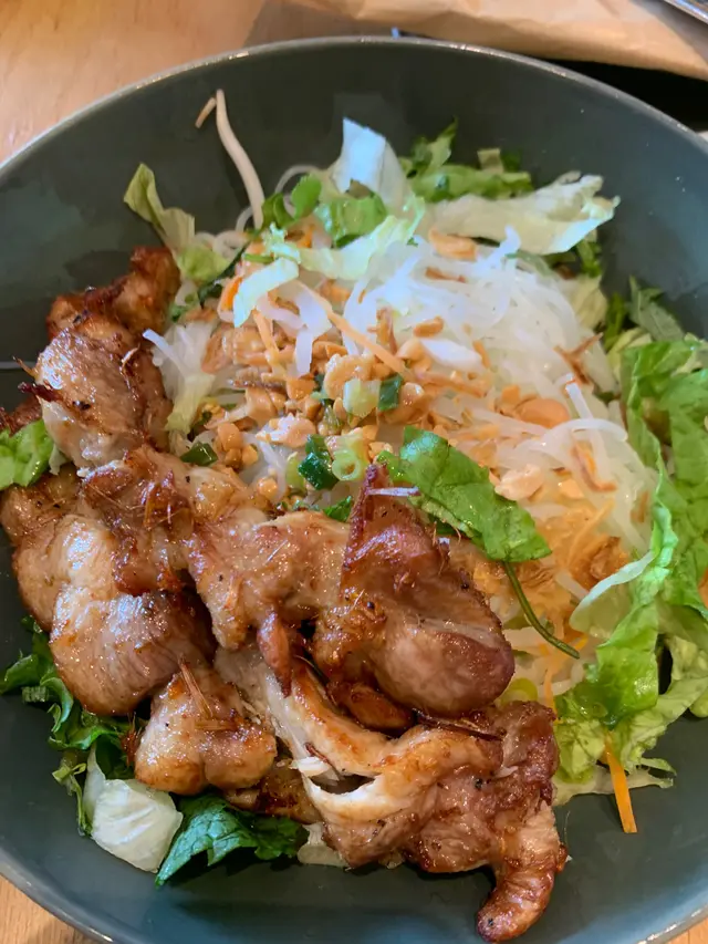 星期五晚,來到海港城,周圍都人山人海,好彩呢度有位😁之前都係食lunch居多,今次吃dinner,叫左個燒雞撈檬同越式燒牛肉三文治。叫左啲之前無叫過嘅嘢,感覺令我喜出望外!🤩燒雞撈檬($78)啲雞燒得好香,有好重香茅味,咬落都啖啖肉又crispy!正呀!檬粉彈牙!蔬菜亦好新鮮!👍🏻👍🏻推介之選!越式燒牛肉三文治(好似係$65)越式法包唔會太硬,軟硬適中!不過就略嫌牛肉太少,中規中矩之選!進食期間,店員多次斟水,招呼非常好!餐廳座位寬敞舒適👍🏻又有靚靚維港景睇,正!…查看更多