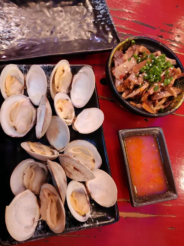 近排朋友喜歡食串燒,和佢去左依間居酒屋食。店子細細但都好日式裝潢。主打串燒食落幾有炭燒風味。餐廳提供熱石板以作串燒保温之用,熱住食的確好味。燒馬來西亞大蜆 $98海蜆大隻,蜆肉肥美無沙,食落好鮮味。燒新鮮脆皮白鱔 $78鱔皮燒得香脆,魚肉厚身爽彈多汁又無骨,食一串好有滿足感。鹽燒日本雞心 $39雞心爽口彈牙,鮮味幾突出。海鹽燒王牌牛舌 $58牛舌厚切,口感軟腍爽彈,牛味香濃。孜然燒茄子 $39茄子大條,口感軟綿,配孜然粉惹味。燒虎椒 $19虎椒口感柔軟,唔辣。燒雞頸肉2串(鹽燒) $48雞頸肉爽口彈牙,鹽燒惹味。燒羊肩肉2串(孜然) $58肉質軟嫩多汁,有肉味又唔羶,有驚喜。照燒汁燒京葱 $22京葱爽口塗左薄薄燒汁,甜美清香好味。明太子釀雞翼2隻 $49雞皮燒得香口,雞翼釀滿明太子,啖啖肉口感,咸香美味。海鹽燒牛肩胛 $49牛肉軟嫩多汁,牛味濃,仲好有炭香味。煙肉韭菜卷 $32清新的韭菜俾煙肉捲住,鹹香爽口。…查看更多