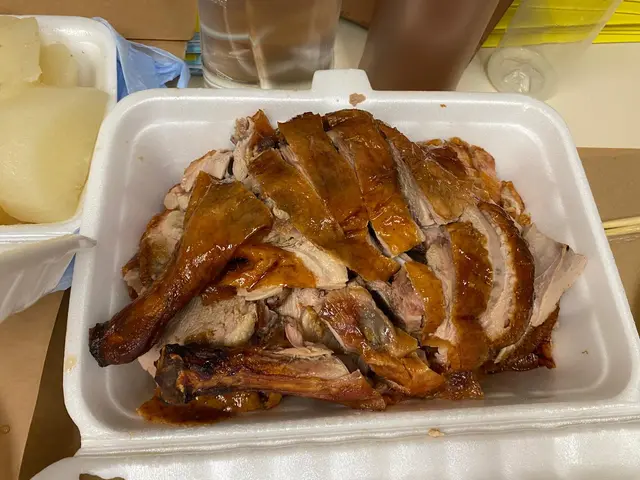 灣仔lunch time外賣清真惠記 6個人叫咗一隻燒鴨外賣左都仲皮脆肉嫩秘製鴨汁濃郁鴨肉呈現鱗光色咖喱羊十分出色,咖喱特別,羊入味份量多,性價比高 ,撈飯一流。清湯蘿蔔蘿蔔無渣,多汁清甜蝦籽柚皮製作程序複雜 唔係日日都買得到好彩今日買到一盒 柚皮多汁 ,同蝦籽好夾老闆好好人,好nice熟食中心都可以有五星級服務質素。…查看更多