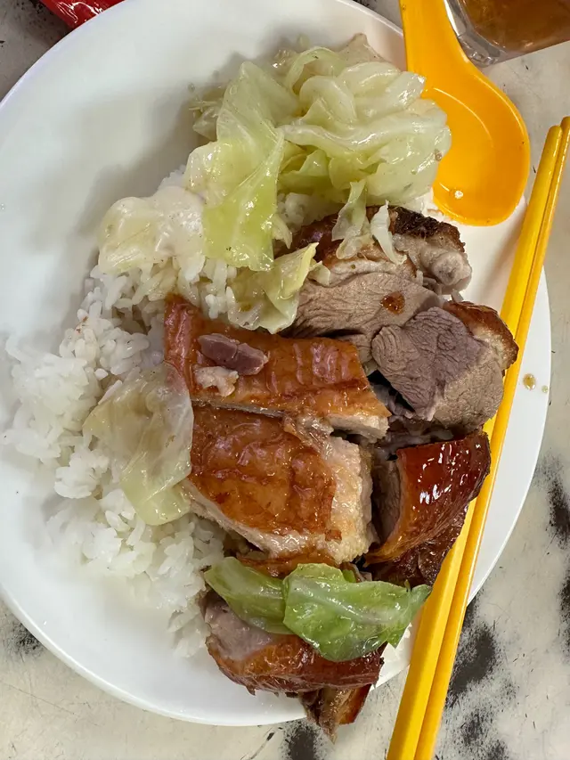 呢間野不嬲出名,好評如潮。所以會一會佢。今次叫既係雞鴨雙拼飯。去相~~~~先唔講味道,$40蚊咁大碟野,已經好抵食。而且望落都正常樣,而且離遠都聞到個汁既香味,好多燒獵店整到成堆垃圾咁,呢個絕對唔會。先睇個鴨。胸黎既,但絕對juicy唔鞋口唔乾身,食落仲彈牙添,最重要一樣野係,佢熱架!!!皮仲係脆架!!!有幾何有燒蠟店既燒味係熱架!!!夠熱,夠彈,夠脆,夠味。絕對推介。另一味就被比下去⋯⋯⋯個雞唔係唔好食,只係好普通。個飯底先係精華,我見冇鼓油好似好淡口。一食落又唔係喎,原來淋左汁,好夠味而且好好味,可以話係為個飯畫龍點睛。講其他,地方就大排檔,服務就都係果d呀姐。但係茶任飲,紙巾任用,呢兩點係好吸引我呢d成日唔夠水飲既大汗怪。總括黎講,$40蚊抵食又好食,好過好多大集團既出品。…查看更多