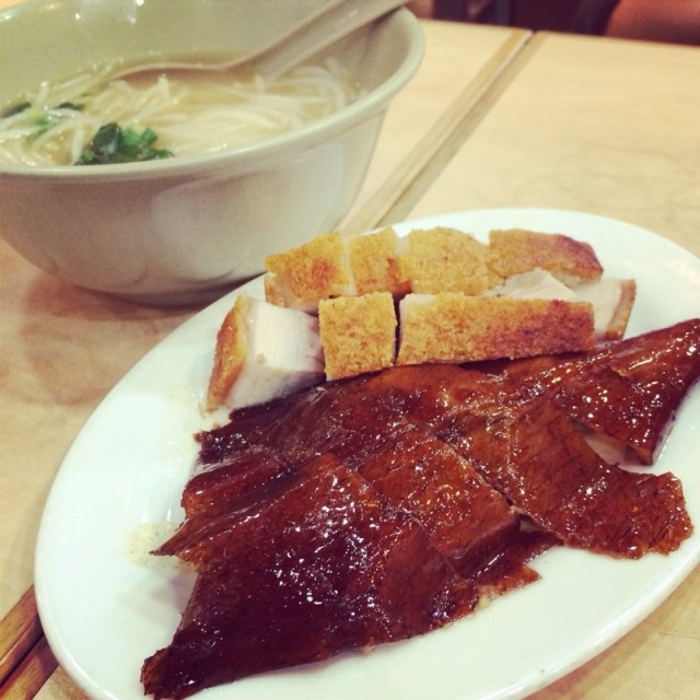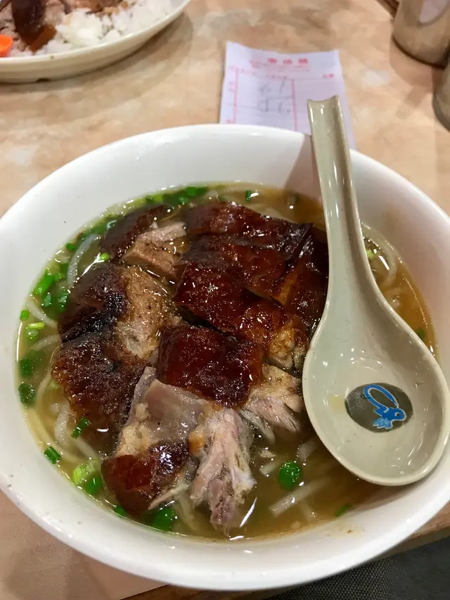 晚上在中環附近覓食,突然想起很久沒來吃一樂燒鵝了。 6:30 入去,接近座無虛席,還好兩人是有位的。 甫坐下就發現旁邊坐的是日本人,對面桌是內地人。看來一樂燒鵝在遊客眼中也很有名氣。顯然,中環店獲得過米芝蓮一星吸引了不少外地客。4年前我來的時候還沒有那麼多人。一坐下,不用想,直接點了最普通的燒鵝瀨粉,56元,貴一點有燒鵝胸瀨粉和燒鵝脾瀨粉。友人則點了燒鵝胸飯。點了食物等沒多久就上桌了,一碗燒鵝瀨粉份量也不少。燒鵝很香,暗紅色的燒鵝皮泛着黃色的油光。一口湯下去,有淡淡油脂和鮮甜,估計有放了燒鵝的剩餘部位去制作湯頭。瀨粉一條一條完完整整,口感煙韌,不是一般貨色可比。吃一啖燒鵝,有明顯的燒鵝肉香,而且肉質細嫩,再一淡湯,口裡的味道更上升另一個層次。我不禁感嘆,燒鵝果然搭上瀨粉才是美妙絶配。最厲害是,燒鵝的皮浸在湯中也還是維持香脆可口,令人佩服不已。普通的燒鵝瀨粉略嫌燒鵝肉會比較少,看來下次點燒鵝胸瀨粉會吃得更開心呢。…查看更多