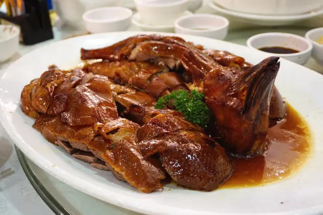 鴨內釀咗好多紅棗及栗子,味道非常之香,不過,唔明點解上枱前鴨殼已經鎅開咗,而且,食落離奇地鴨肉唔多,講明全鴨,而且睇落都唔細隻,好似好少肉。人哋仙鶴神針,我哋就鮮鴨神「針」,封番鴨肚嘅鋼針仲跟埋上碟