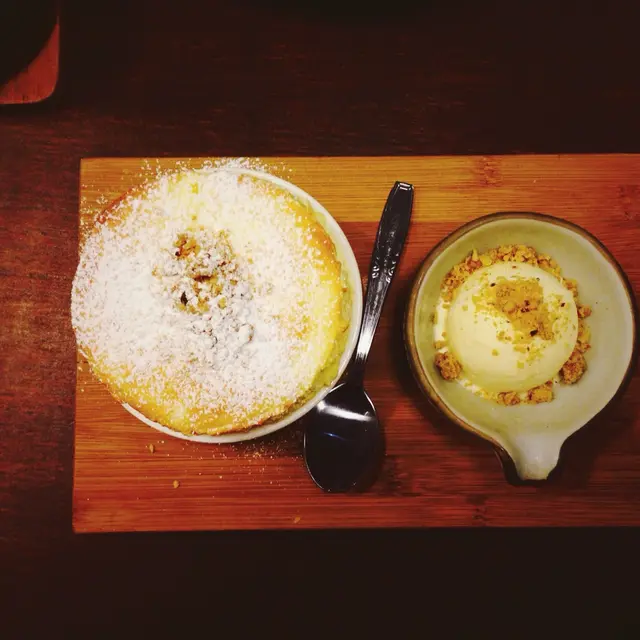 大圍,對於我個人而言,相對是一個頗不熟悉的地區。今次,在享受完踩單車的過程後,朋友逐推介大圍中頗為出名的一間甜品店,屋子咖啡是也。店內位置雖不多,但格局像置身於具特式屋子裡。牆壁上貼上紅紙,毛筆字看上來應該是親手落筆似的。燕麥榛子梳乎里熱哄哄的梳乎里,焗得頗成功的,梳乎里表面灑上薄薄燕麥和糖霜,入口即溶感覺,輕盈軟化。另一面則盛載著雲呢嗱雪糕,雪糕軟滑細膩,味道濃郁,混和燕麥碎粒入口,口感特別。鮮奶咖啡雖說是點了鮮奶咖啡,自然明白鮮奶佔的比重會是較多。呷一口先嚐其味,奶味比平常喝的比重多很多,咖啡味道被奶味給蓋下去,味道不過不失。屋子咖啡一直在朋友口中經常聽到,今天終一嚐,或許是抱著高期望下,食物、飲品沒太大驚喜。然而店內環境、佈局也是令人喜愛的其中因素吧。…查看更多