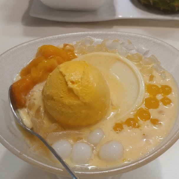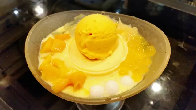 除夕晚飯後倒數前做啲乜嘢好?當然是吃甜品吧!與家人一起找到這家甜品新店,看看餐牌價錢吸引便坐下來了。我們全家人都酷愛芒果,看到餐牌這個「爆芒」非點不可,是8合1的芒果甜品,一碗有齊芒果布甸、芒果肉、柚子、爆珠、芒果乾、蘆薈肉、小丸子、芒果雪糕。一次過吃這麼多芒果,非常滿足。雖然是12月冬天,但芒果肉仍然香甜,生果來貨不錯!布甸等其他材料正常口感味道,這個甜品是以大堆頭取勝!我自己獨食了一個焦糖燉蛋,個人給予很高分數,焦糖燒得很香脆,而且比一般厚身,敲很多下才會列開,內裡燉蛋很挺身,沾著焦糖脆片吃香脆軟滑。而且十分足料,燉蛋有很大份量,甜度中等,不算太多糖,夾著厚切焦糖剛剛好!小表妹點了益力多雪花冰,簡直是小朋友恩物,一大碗雪花冰滿口都是益力多。面頭有一點點Oreo加添些少香脆口感,加上爆珠吃得很過癮。我吃了兩口覺得偏淡,小朋友可能喜歡,而雪花都幾實正,沒有溶化得很快。整體OK!小表妹平時很喜歡雪花冰,大圍的甜品店她差不多全吃勻,她這個小食家說:30幾蚊抵食呀,另一間食雪花冰要50幾蚊㗎!…查看更多