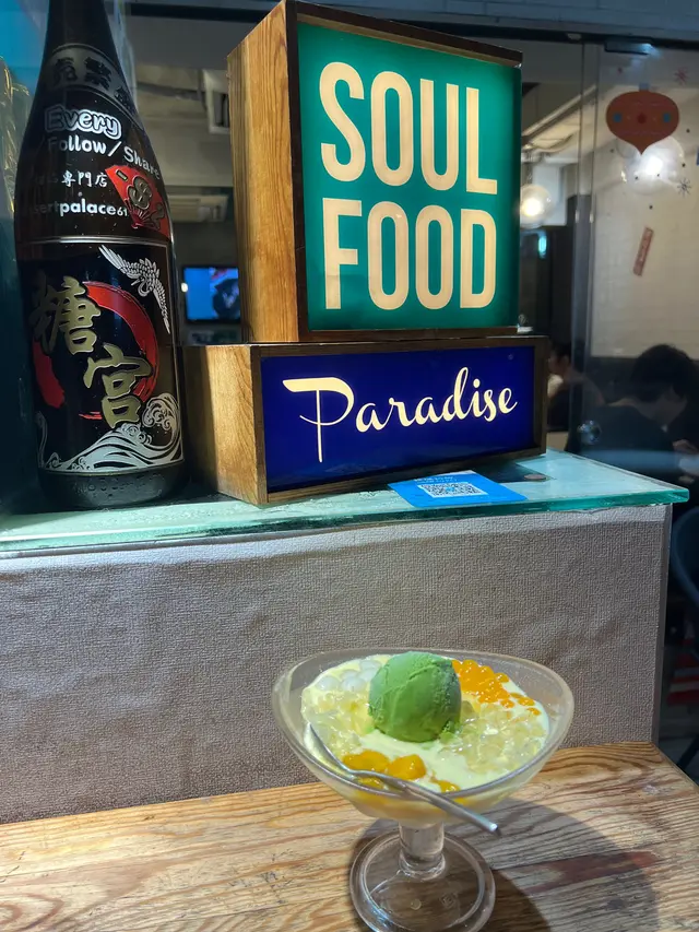今日同女人喺大圍食完晚飯, 女人話未夠飽話要發揮佢嘅第二個胃食甜品 於是帶埋姨甥仔一齊出發呢間糖宮甜品,間舖細細但竟然入面係有兩層,而且裝修都幾靚門口仲有用粉筆寫嘅黑板menu,幾型!我自己就點咗呢款爆芒,上層係芒果雪糕下層係芒果布甸 而旁邊係芒果珠珠及芒果, 抵讚嘅係芒果好甜而且份量十足我女人點咗呢款鰹魚燒配紅豆及綠茶雪糕 送黎先發現條魚入面原來係雲呢拿雪糕,佩埋紅豆食味道唔錯姨甥仔就點芒果布甸,佢一個人食份量啱啱好,佢都食到舐舐脷最後點咗呢個糖不甩一齊食,花生夠香, 但如果再甜番少少就perfect埋單共153蚊,唔算太貴臨走先發現有呢啲甜品寫咗喺玻璃, 應該係佢哋店嘅signature ,上下次來要試下先…查看更多