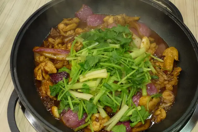爺爺雞煲皇喺土瓜灣美景街,店面整潔明亮,應該是新開張不久。鴻福當涼茶 $13津路烏龍茶 $14有汽水啤酒以外的選擇,而且是支裝,就算飲唔晒都可以帶走!胡麻冰菜 $38叫了一個即食的餐前小吃,冰菜冰涼爽脆,口感獨特,不錯的前菜!爺爺招牌雞煲 $158試新餐廳當然要試下招牌菜,我們叫了半隻雞和BB辣。雞煲醬汁香濃,雞肉非常入味,微辣帶中等勁度的麻,吃得過癮!而且雞件的肉質仍能保持滑嫩唔鞋,處理得相當不錯,不愧為招牌菜!雞煲內的紫洋蔥也不要錯過啊,䀆吸了雞煲和香料的精華,極其惹味!