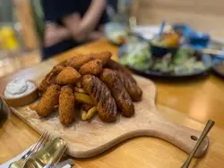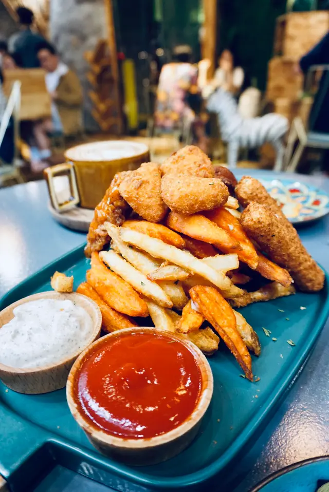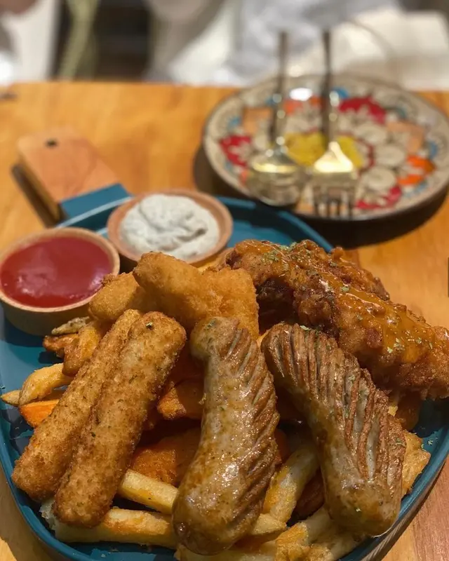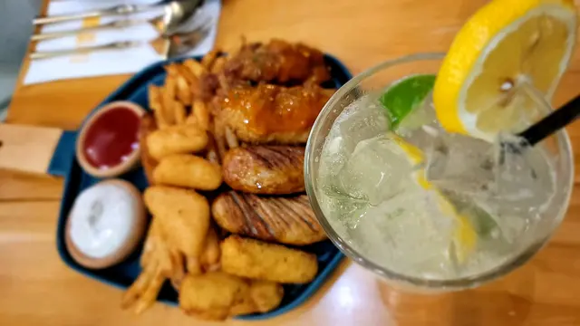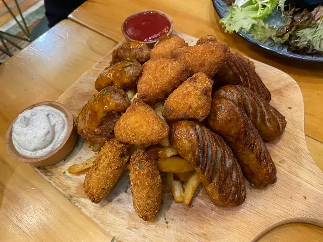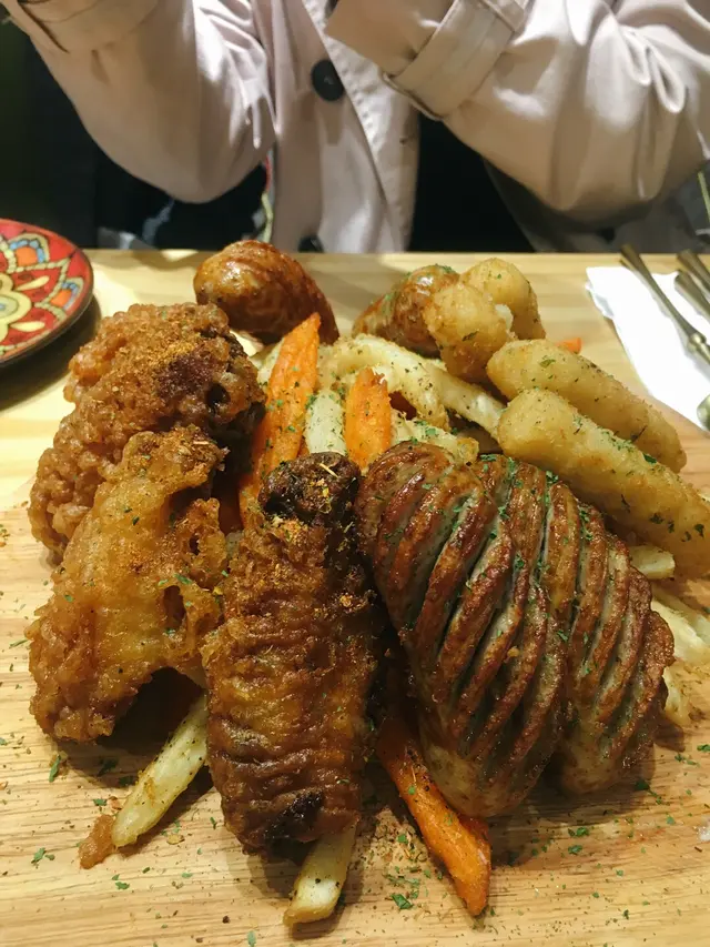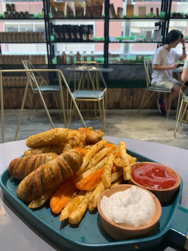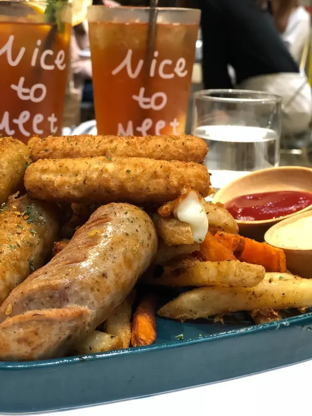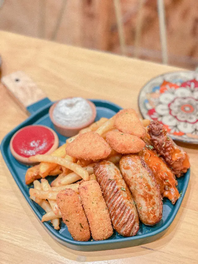 餐廳佈置得好似森林好多花草裝飾枱凳以木色系為主坐得好舒服今次黎慶生 店員安排左細房仔比我地坐可以靜靜地傾計甜品可以畫碟👍.🌟慢落豬 $288黑毛豬肉串燒有三條啖啖肉 好香炭燒味💕豬肉仲好juicy 調味足夾雜肥肉 有啲油脂感❤️仲有三色椒平衡下🫑番薯條炸到好脆🍠甜甜地好好味.🌟明太子蟹肉意粉 $178蟹肉有一球擺盤好吸精📸份量好多明太子加忌廉好creamy🍝份量夠晒撈意粉食.🌟牆城小食拼盤 $188德國腸薯條🍟番薯條🍠炸雞翼兩款炸芝士 🧀炸到好香口好邪惡😍.🌟森林和原野 $148呢款用咖啡雪糕砌成樹嘅樣加上抹茶味crumble🍵同朱古力做點綴🍪食落冇咩特別不過用黎畫碟慶生都幾靚🎂.📍 慢理牆城 (油麻地)油麻地砵蘭街28號M1酒店1樓…查看更多