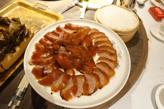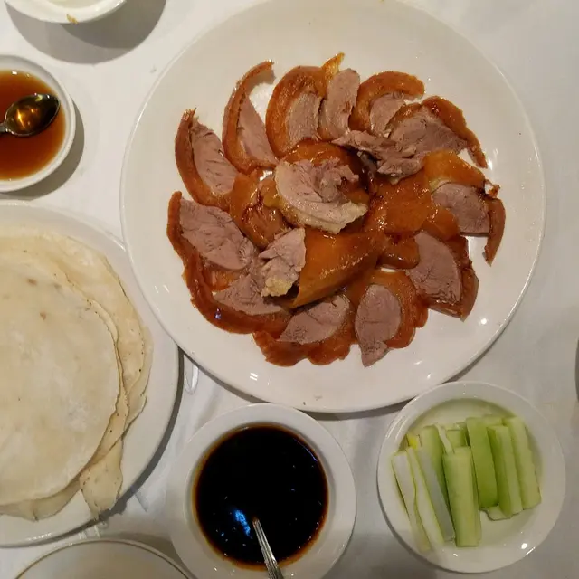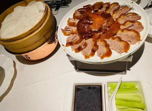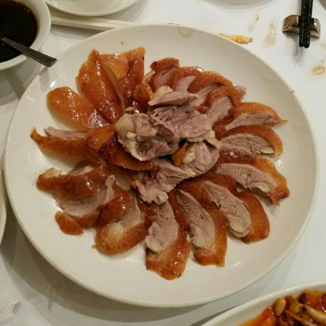 好多年無嚟,以前都係同外國朋友或回港同學嚟食,而家好多酒樓都有填鴨食,不過都好參差。今次再嚟北京樓,裝修過係好啲,估唔到全埸滿晒。填鴨水準保持到嘅,唔會太多肥膏,皮脆加埋皮出片鴨肉,一咬之下咇少少鴨油,夠香而唔會好膩,薄薄餅皮有爐烘住保暖,而且有蒸氣令個皮保持濕度,每塊皮有一張墊紙,好方便唔怕撕爛。呢啲細節加分嘅。我哋三個人食半隻鴨,份量好足,餅皮都夠多,靑瓜大蒽唔夠可以添加。其他菜式,份量幾足,味道唔錯。半隻鴨、雞丁、牛肉、炒飯、炒蒿荀,連酒水,一千蚊左右,合理價錢。老字號企得住,難怪唔少捧場客。如果一班朋友,訂窗口位,睇埋夜景,應該幾正。…查看更多