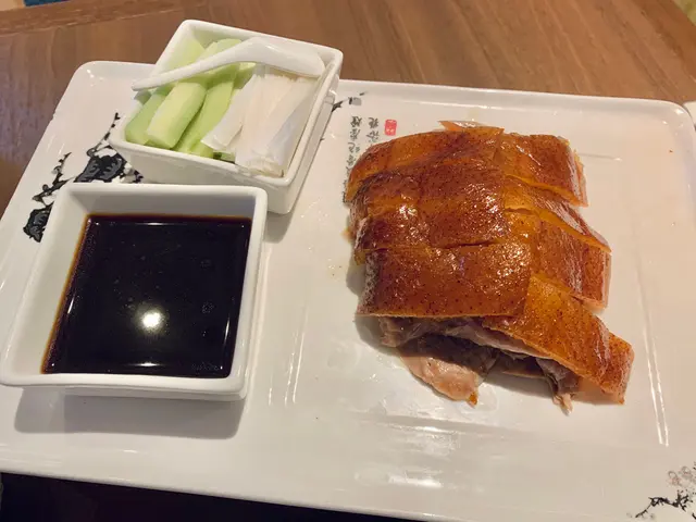 又係衝住片皮鴨而嚟嚟呢間食片皮鴨比起同一集團另外一間xx鴨子化算果間野收埋茶芥x2 + 花生埋單要貴$100但2間味道又差唔多.呢間食可以叫佢唔使上茶免收茶界$190/半隻天氣好果陣坐戶外,仲可以有維多利亞夜景/海景睇🌃🌅有其性價!!.講返隻片皮鴨外表賣相吸引金黃色的酥脆鴨皮誘人至極每一口下去,皮脆肉嫩,油香四溢絕佳的口感.不過食到最後都係難逃鴨皮的油分讓人有些許膩既命運所以食半隻都最少要兩個人😂…查看更多