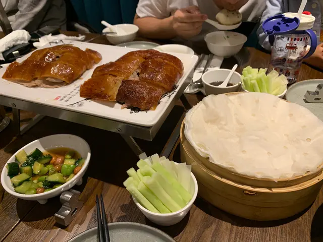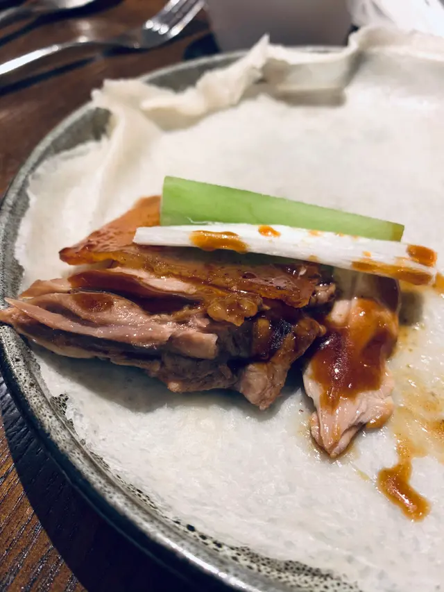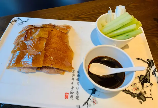 我們叫了四人餐,片皮鴨是這裡的招牌菜,皮很香脆,下面的油膏也入口即化,配上青瓜和薄餅,將肥膩和清爽融合在一起,讓人不禁會吃上許多口。糖醋小排很普通,肉質太粗,很難咬開。鴨湯餛吞煲非常好,湯味道很鮮美,卻又不會太鹹,我們能夠把湯全都喝完,感到很滿足!其他的配菜沒有什麼讓人感覺特別驚艷的地方,在這裡還是主要吃鴨子有關的菜餚吧。另外,晚市堂食真的要等很久,我們等了接近一小時,建議遙距取飛,另外可以考慮早些來排隊。…查看更多