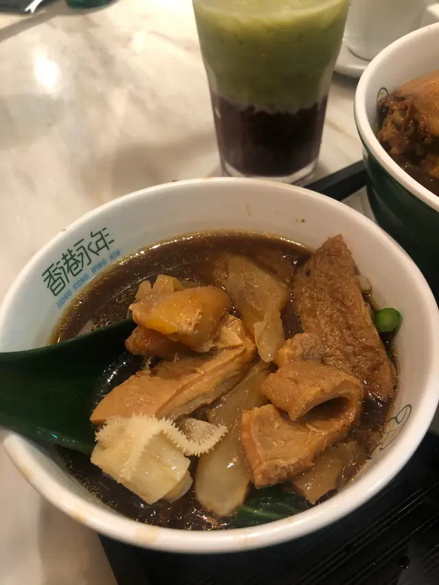 #MC帶你去沙田.依間人氣老字號麵店,以地道港式車仔麵及招牌咖喱辣汁揚名,廣受街坊、食客推薦。近年更進駐沙田新城市開設分店。➖✨ 香港永年車仔麵茶冰廳.餐廳結合車仔麵及冰廳,主打車仔麵、港式快餐、茶餐廳美食;店內裝修以懷舊老香港為主題,搭配復古海報、絕版西瓜波、舊式收音機等,充滿香港情懷。➖🥢 懷舊蝦多士|$28(⭐推薦).蝦多士一客三件;即叫即炸多士炸得金黃酥脆,蝦膠餡料好爽滑,搭配沙律醬,中和一下炸物油膩感,整體香口惹味!➖🥢 牛三寶|$38.大大件擺滿整個湯碗,份量足料!咖喱香味濃郁,更可以選擇辣度;牛柏葉鮮嫩脆爽、牛肚入味軟腍、牛筋腍嫩有嚼勁。➖🥢 永年大碗麵|$108(⭐推薦).配料有成10款食材,好豐富澎湃!豬腸鮮嫩爽口無異味,魷魚口感爽脆,魚蛋有陳皮味,豬紅滑嫩細膩,蘿蔔清甜無渣,豬皮、雞翼、雞翼尖都滷得幾入味;愛辣人士一定要試招牌永年辣醬,層次豐富又唔會死辣,辣得過癮。➖🥢 美國頂級西冷扒 配 意粉|$156 .五成熟嘅西冷扒,厚身大塊!上枱後肉質依然帶少少粉嫩色,肉味幾濃郁,十分不錯!搭配黑椒汁,黑椒汁辣度適中;隨餐附送羅宋湯,酸酸甜甜好開胃。➖🥢 紅豆奶茶冰|$28 (跟餐加配$15).紅豆軟綿香甜,加上奶茶細滑順喉,茶味香濃。➖🥢 樽仔奶茶|$28 (跟餐加配$15).樽仔奶茶入口奶香味濃,茶香奶滑,甜度適中。➖➖➖➖➖➖➖➖➖➖➖➖➖➖…查看更多