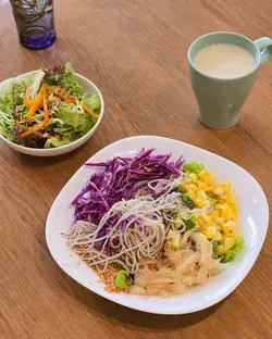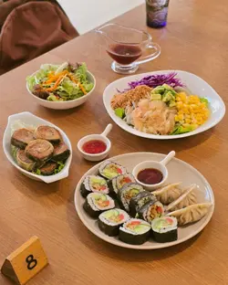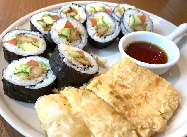 Loving Nature係一間純素cafe,逢星期日休息。地點係葵涌工業區附近,由Edge嘅1樓行出平台,或者直接由面對青山公路嘅大街轉入都可以。牛油果天貝壽司 配香煎蔬菜香茸餃 ($70)豆奶 (跟餐送)壽司包住天貝、牛油果、青瓜同甘筍,牛油果夠淋身,入口融化。旁邊嘅醬汁質感比較稀,似豉油味。牛油果柚子蔬菜拌紅薯粉 ($70)紅薯粉有少少煙韌嘅口感,撈勻花生同酸酸甜甜嘅醬汁一齊食,幾開胃。香煎芋頭卷 ($50)一層腐皮、一層紫菜包住芋頭蓉,食落好香紫菜味,腐皮夠脆,芋頭好綿滑,整體配搭幾好食,點埋泰式酸辣汁會冇咁膩…查看更多