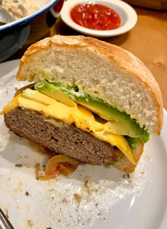 呢間店行親過海運都會行過望到,今日終於有動力去一試。等位嘅人唔算太多,所以好快就有位。我哋點咗「牛油果芝士漢堡」同「明太子醬北海道三文魚籽意粉」。第一道上菜嘅係「明太子醬北海道三文魚籽意粉」,佢個明太子醬夠creamy,如果多啲明太子,相信效果會更好。三文魚籽嘅份量夠多,一啲都唔孤寒,意粉質感唔錯,我幾鍾意呢種意粉;跟住係另一個主角「牛油果芝士漢堡」,呢個絕對係驚喜,我以為佢係用牛油果醬,原來係真嘅牛油果🥑,仲有半個咁多。漢堡牛肉夠厚同juicy,牛肉味夠香。落單時店員問使唔使切開,呢一點好細心,亦好方便食,唔使自己切到變哂形。第一次食漢堡可以食得咁乾淨,邊食忍唔住不停點頭,我食過嘅漢堡唔算多,呢個暫時食過嘅第一名,而且係對得住呢個價,我覺得可以再食其他嘅菜式。…查看更多