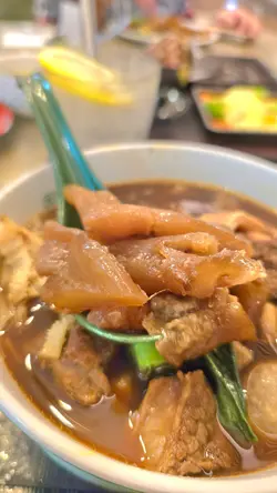 有朋友從外地來港,跟我說要吃香港地道美食,要數香港地道美食,車仔麵一定榜上有名,今次來到〔香港永年車仔麵茶冰廳〕,餐廳雖然馳名車仔麵,但餐牌上亦提供了不少選擇,除了有港式茶室食品,更有不少懷舊小食。店內裝潢帶點港式情懷,近落地玻璃窗位置,更有懷舊綠色梳化椅,環境寬敞更可以欣賞落地玻璃窗外面的沙田園景。牌【永年大碗麵】(HK$108)店內的招牌菜之一,車仔麵大大碗而且有很多款餸: 豬腸、豬紅、豬皮、雞翼、雞翼尖、魷魚、紅腸、魚蛋、蘿蔔及時菜,相當豐富。其中最喜歡是滷水豬腸及豬皮,入口淋身有咬口又煙韌,滷水出色之餘煮到非常入味,而魚蛋有陳皮味道亦都很有特色。喜歡吃辣的朋友仔,必定要加這𥚃的自家秘製招牌永年辣醬,有分不同辣度,又香又辣,令車仔麵味道增加不少層次。【特級牛柳頭】(HK$156)叫了五成熟,用鐵板盛載很有懷舊鋸扒風味,上菜時鐵板熱氣逼人,預先牽起餐巾遮擋,淋上黑椒醬汁,咋一聲等煙霧輕散,就可以吃,輕輕用刀就可以切開,牛柳頭中間呈現鮮嫩紅色,入口肉質非常軟腍而不韌,墊底的洋蔥很大塊,入口很清甜,簡單的黑椒汁加上意粉,已經很惹味,跟餐還可以配上〔牛油果薯仔蝦沙律〕或〔餐湯〕。【南乳豬手】(HK$38)又稔又滑的豬手,豬皮充滿骨膠原的口感,而且南乳燜煮得非常入味。【蔥油豬腸】(HK$28)豬腸洗乾淨處理得很好,大腸沒有異味,配上蔥油吃,充滿蔥薑的香味,另有一番味道【抹茶紅豆冰】(左) (跟餐加+HK$15)【紅豆奶茶冰】(右) (跟餐加+HK$15)…查看更多