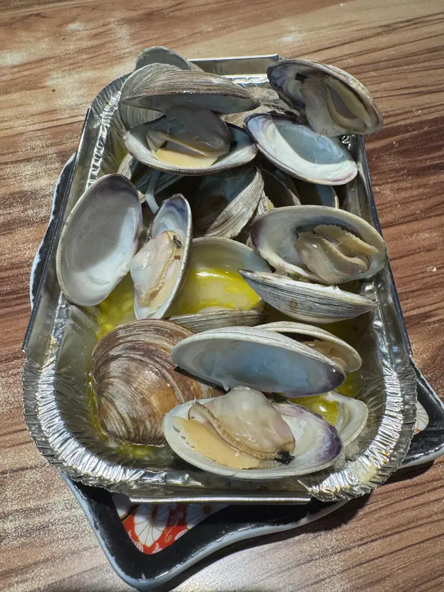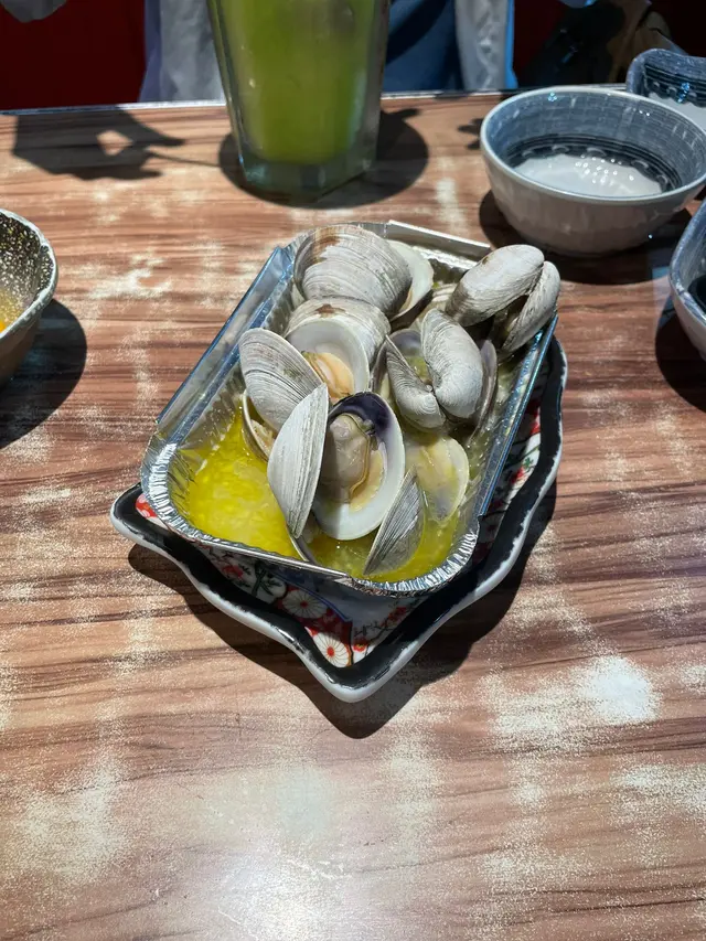 今晚同老公到了元朗這間食燒物既食店食晚餐!呢間餐廳有超多款式既燒物、串燒、海鮮、刺身、壽司、拉麵等等,食物種類超多!淨係諗揀咩食都諗左一輪了!今晚我地主打食燒海鮮!呢度既海鮮又新鮮又肥美!鮮甜無比!而且仲啖啖肉,又有好多款唔同既口味可點選!蒜蓉牛油焗蜆!熱辣辣,牛油、蒜蓉都超香超惹味,配埋蜆肉,又清甜又鮮美,超美味!份量又多,正!燒扇貝蒜蓉口味,扇貝大大隻啖啖肉,很肉厚!滋味!配埋蒜蓉,勁邪惡!黑豚肉五花腩串,燒得勁香口,惹味,啖啖肉好香脆,非常出色!台式黑椒腸,黑椒腸帶點點微辣,味道好吸引,而且台式腸帶點點甜味,煙煙韌韌的,好正!燒香菇,又多汁又清甜!好好味牛油錫紙焗金菇,金菇又香又滑,濃濃既牛油勁入味!非常惹味同大滿足!燒生蠔!勁大隻既蠔!每隻蠔都超巨型,啖啖肉好滋味,我們仲點了3款唔同口味,芝士、蒜蓉、香辣蒜蓉,每款口味都各有千秋,我們最愛都係芝士焗!勁邪惡,又芝味!正!燒大頭蝦,蝦肉清甜爽口,啖啖肉好滿足!燒蟶子蒜蓉口味,蟶子非常清鮮,而且蟶子肉都好爽口彈牙,而且大大條的,超有咬口!燒羊架,勁美味,羊架燒得恰到好處,岩岩好熟到,咬起來肉質仲好嫩,又勁香羊味!啖啖肉,勁滿足!雞翼串勁惹味,燒到皮香肉嫩,超多肉汁,香氣撲鼻!軟殼蟹手卷,軟殼蟹脆卜卜,金黃香脆,超美味!紫菜又脆卜卜,整個手卷都相當美味!餐廳既燒物非常出色,款式又多!慢慢傾計嘆下~正而且飲品都超巨大同埋特別!檸檬紅茶!超大杯,慢慢嘆,茶濃檸香!鯊魚特飲,賣相好得意,而且杯野飲仲會變色的,相當新類,而且飲起來非常清新同解渴!…查看更多
