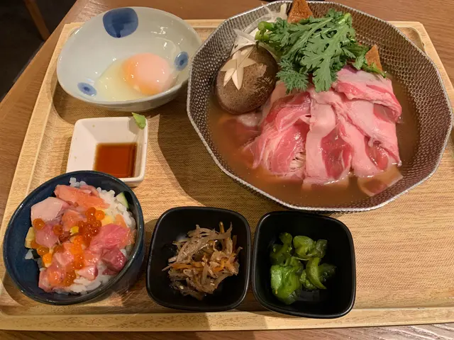 門口旁邊有個沙律吧,可以自行決定要唔要加配,當日抽風系統好似比較差,可能比較多人燒肉,入到餐廳已經感覺到煙霧彌漫😵💫😵💫不過都無阻我想食既決心配有日本溫泉蛋、兩款前菜、迷你魚生飯前菜係醃青瓜同牛蒡,個人唔太好呢兩款漬物,迷你魚生飯有三文魚、三文魚籽、吞拿魚同甜蛋❤️不過最出色都係主角烏冬,烏冬超級入味,仲有數片油揚,皇帝菜同牛肉,一上檯就放上電池爐,可以食住魚生飯等待壽喜燒煮熟🔥有個小爐自助燒肉,可以自行決定牛肉生熟度👍🏻牛味濃肉質都好好,牛小排油花較多,個爐仔可以燒到啲肉有好靚既烤紋,珍珠米粒粒包滿銀鱈魚煎得好靚,size都幾大,無腥味之餘仲食到白味噌獨有味道🤌🏻隨餐既味噌湯味道正常,碗飯可以大多小小就perfect 有三件唔係一口size,保留到雞肉既嫩滑度,面頭淋上他他醬,旁邊有小量酸酸甜甜沙律菜,推薦👍🏻👍🏻呢到食物賣相同餐牌圖片相乎,餐牌見到咩樣,上檯就係咩樣👍🏻👍🏻…查看更多